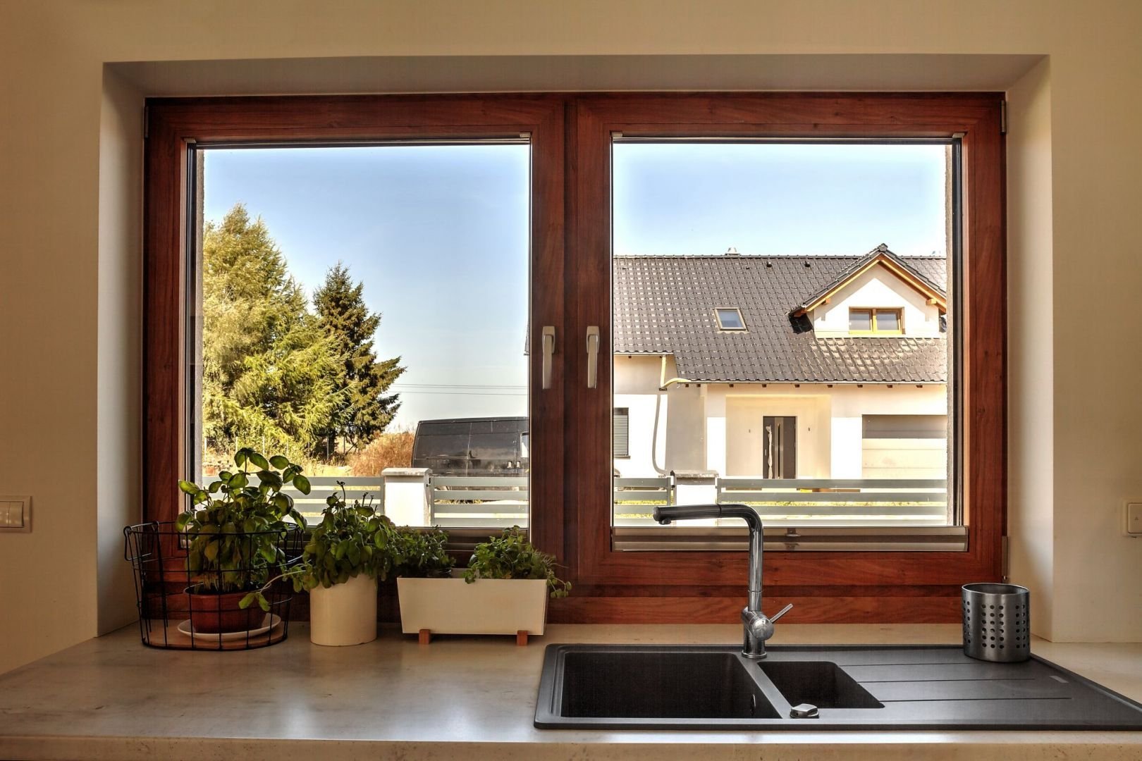 Коричневые пластиковые окна в интерьере