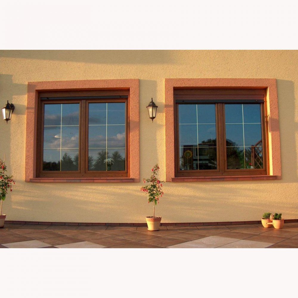 Окна золотой дуб на фасаде