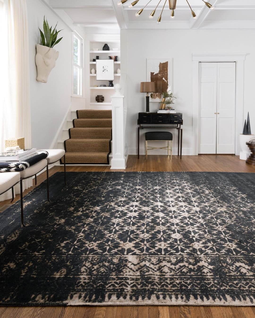 Белый интерьер с восточным ковром