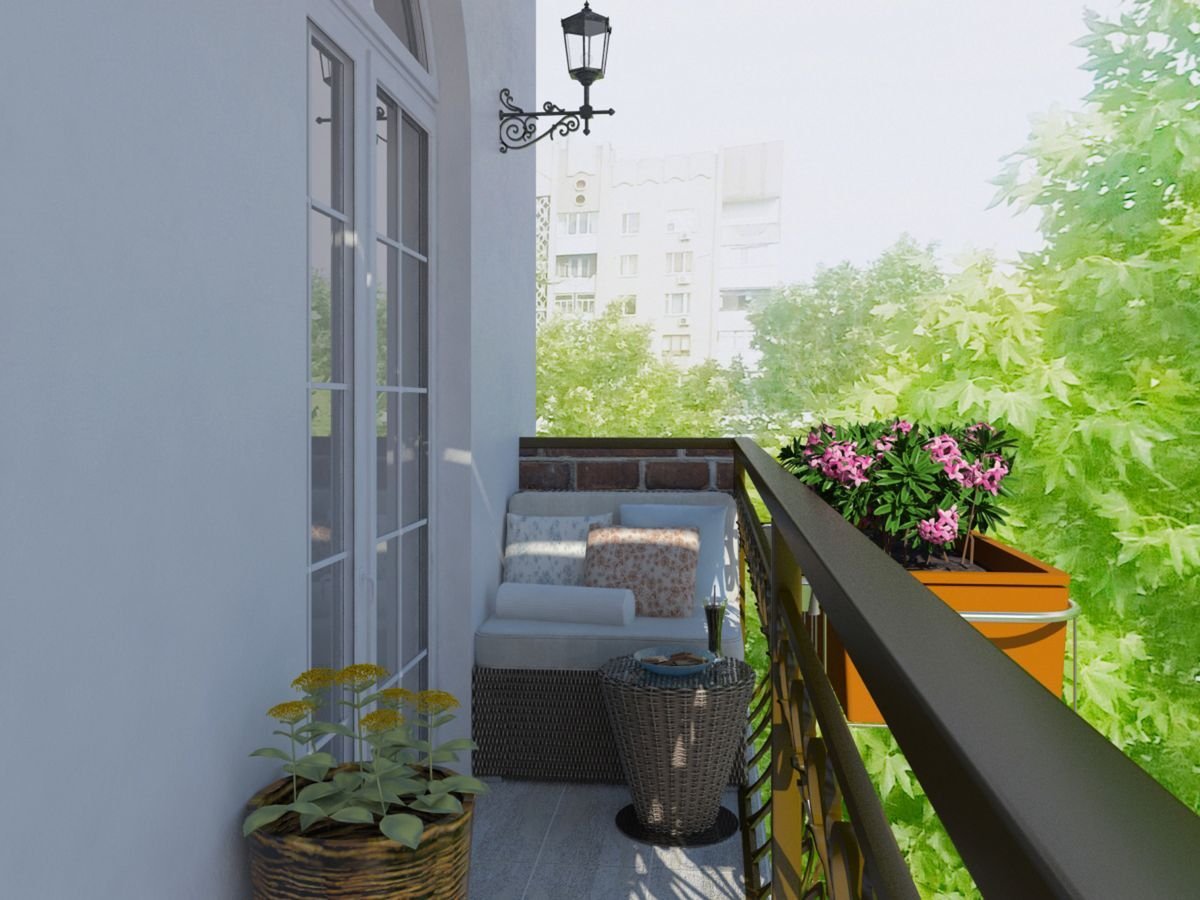 Интерьер открытого балкона