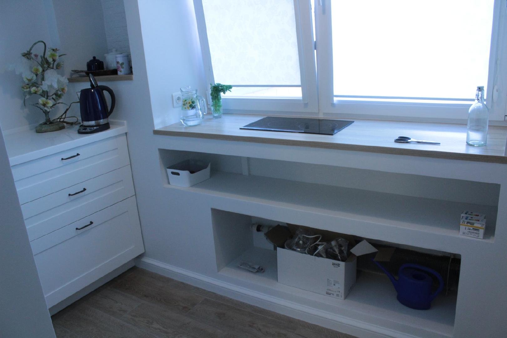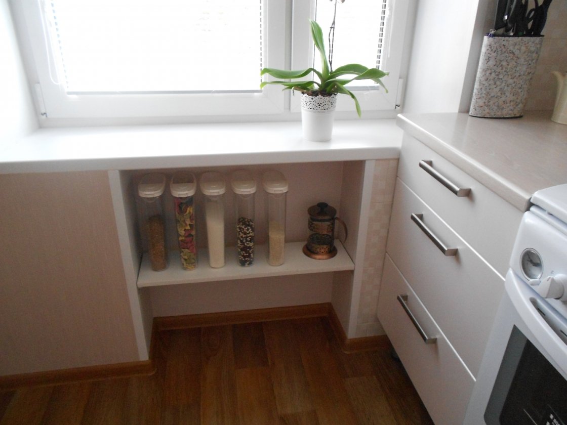 Полки под подоконником на кухне
