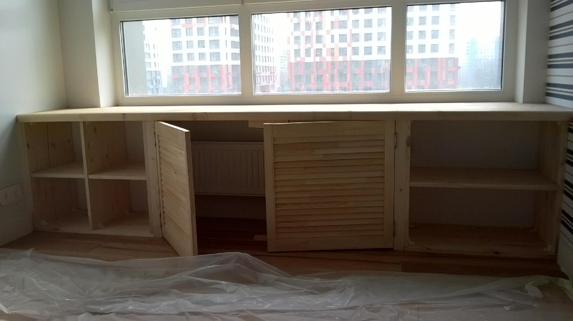 Шкаф под подоконником в комнате