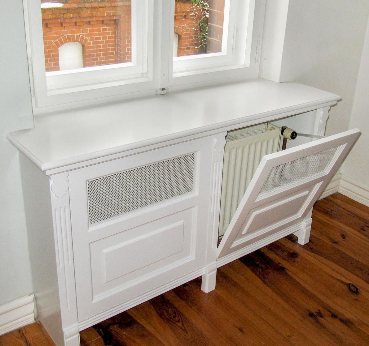 Короб под батарею с полками