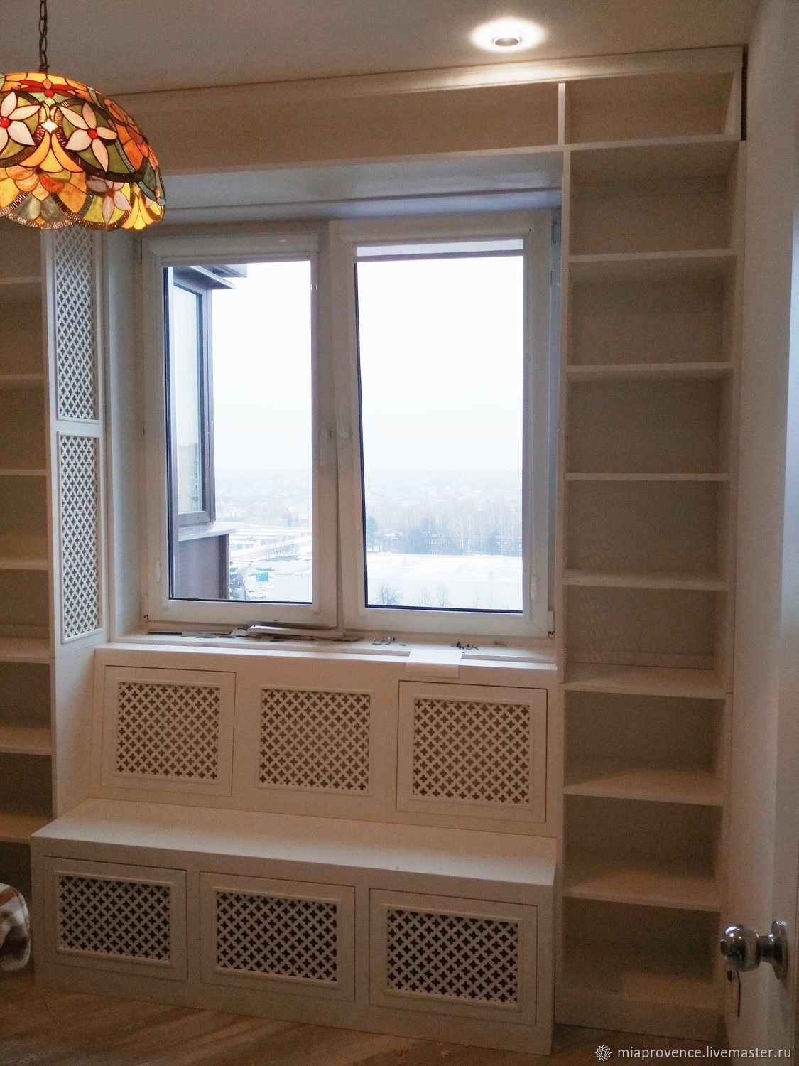 Широкий подоконник с полками