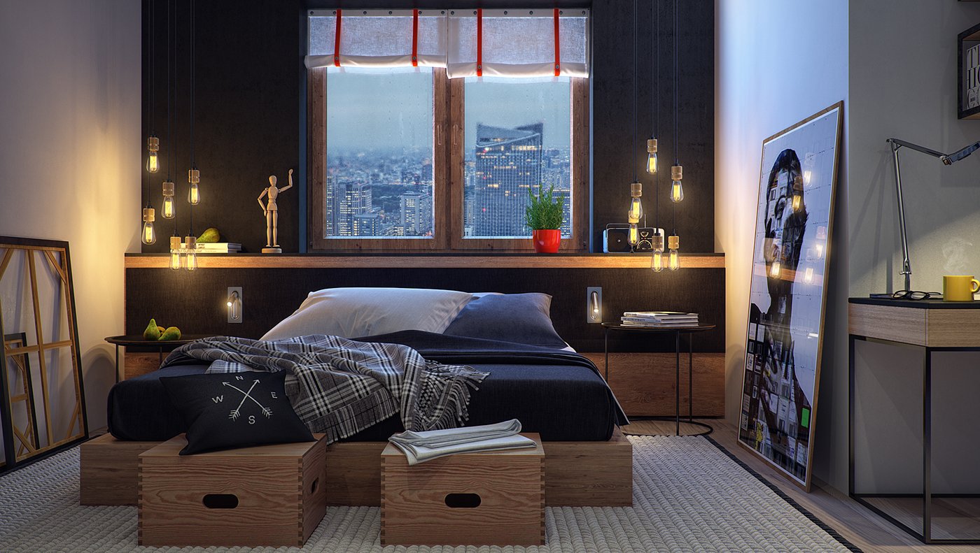 Спальня для молодого человека в современном стиле
