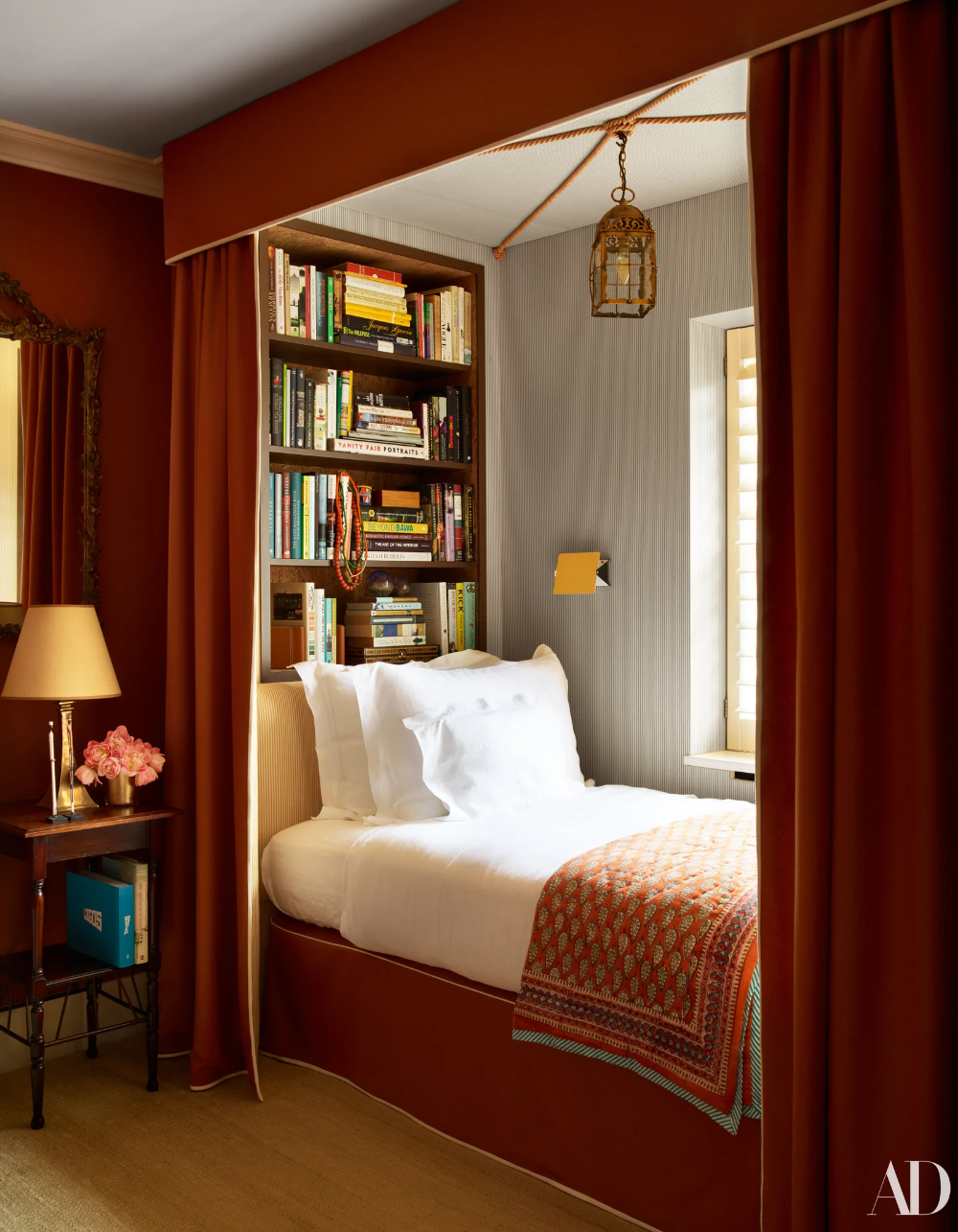 Кровать у окна в спальне