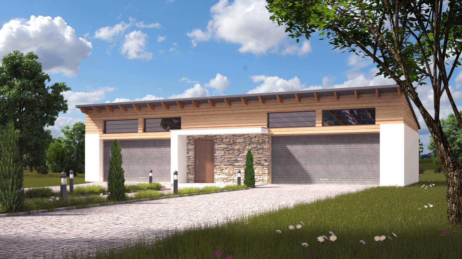 Гараж с мансардой с односкатной крышей