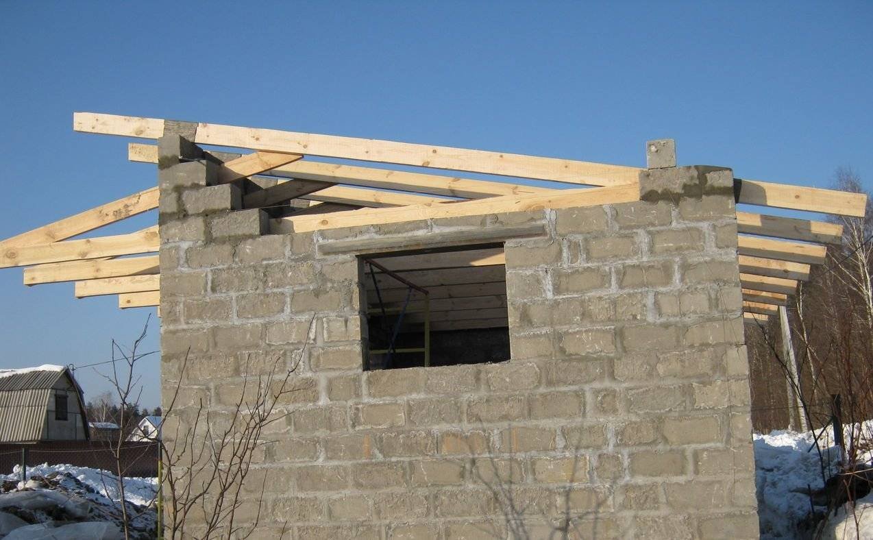 Односкатная крыша для бани из керамзитобетонных блоков