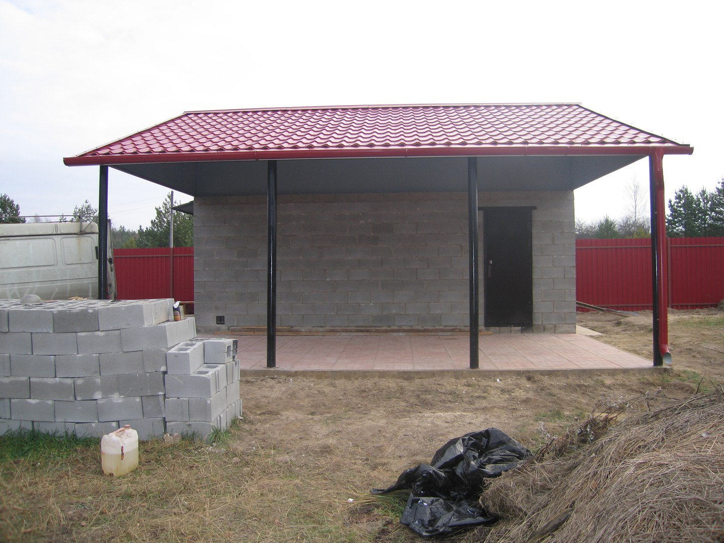 Хозблок из пеноблоков с навесом
