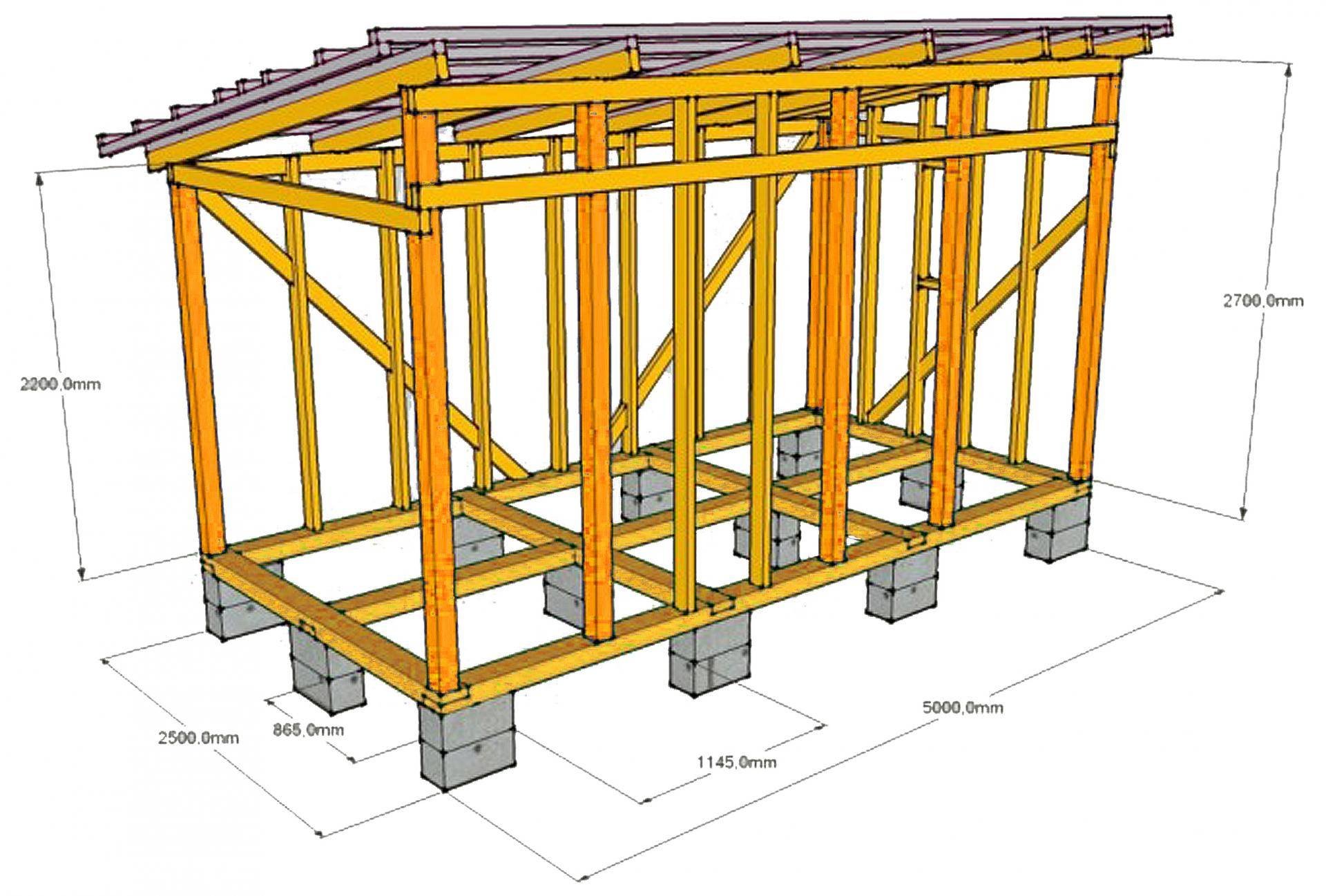 Каркасный сарай с односкатной крышей 2.5 х 5