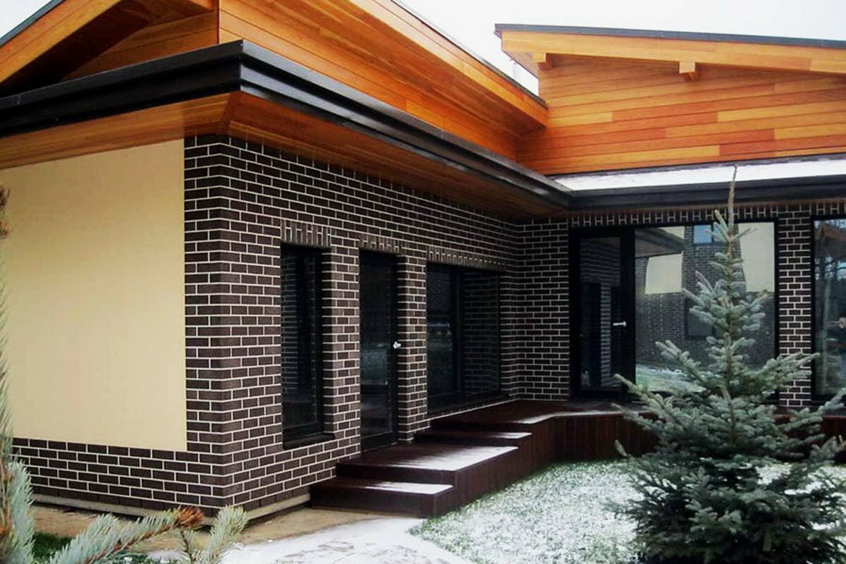 Отделка фасада кирпичом и деревом