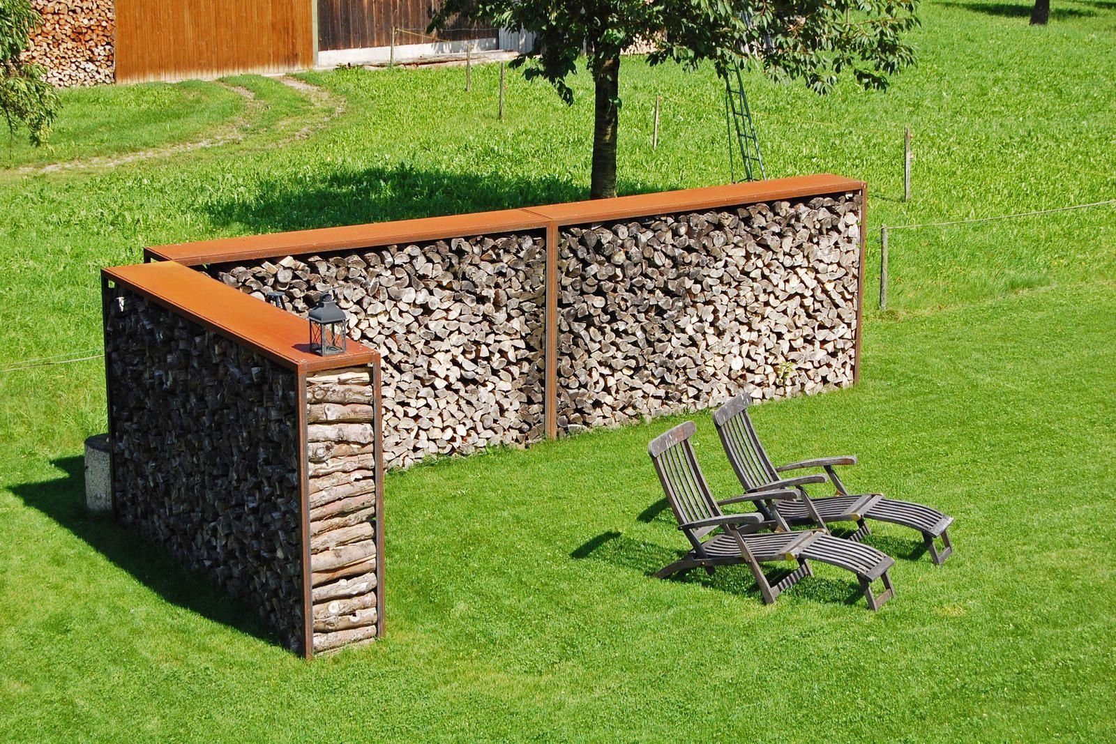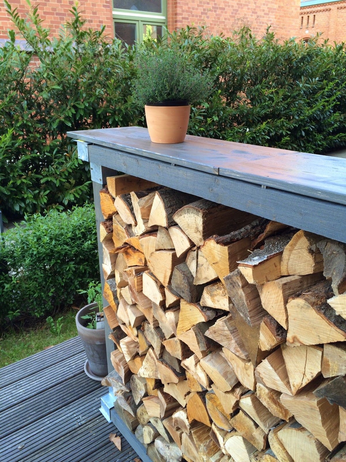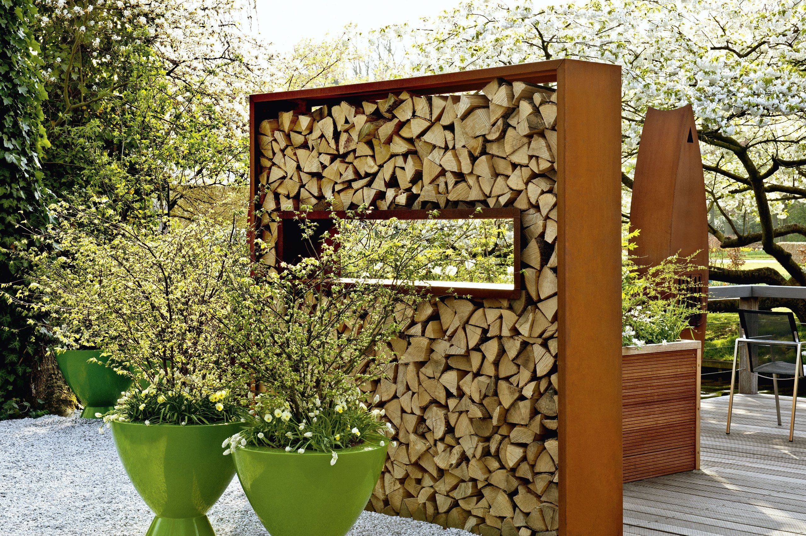 Декоративная поленница в саду