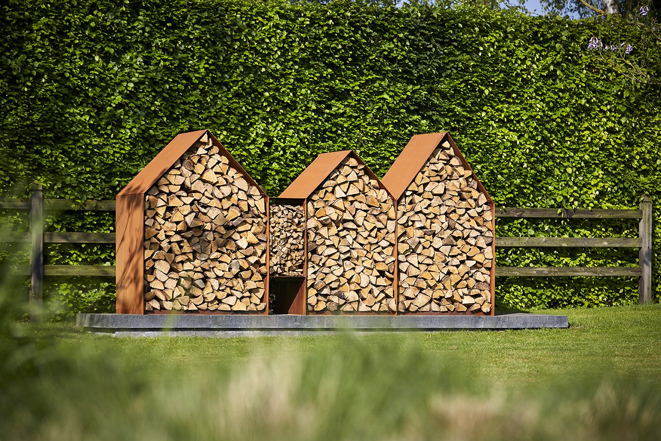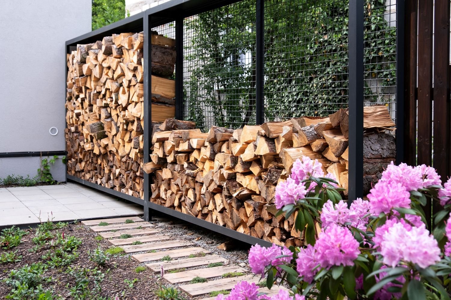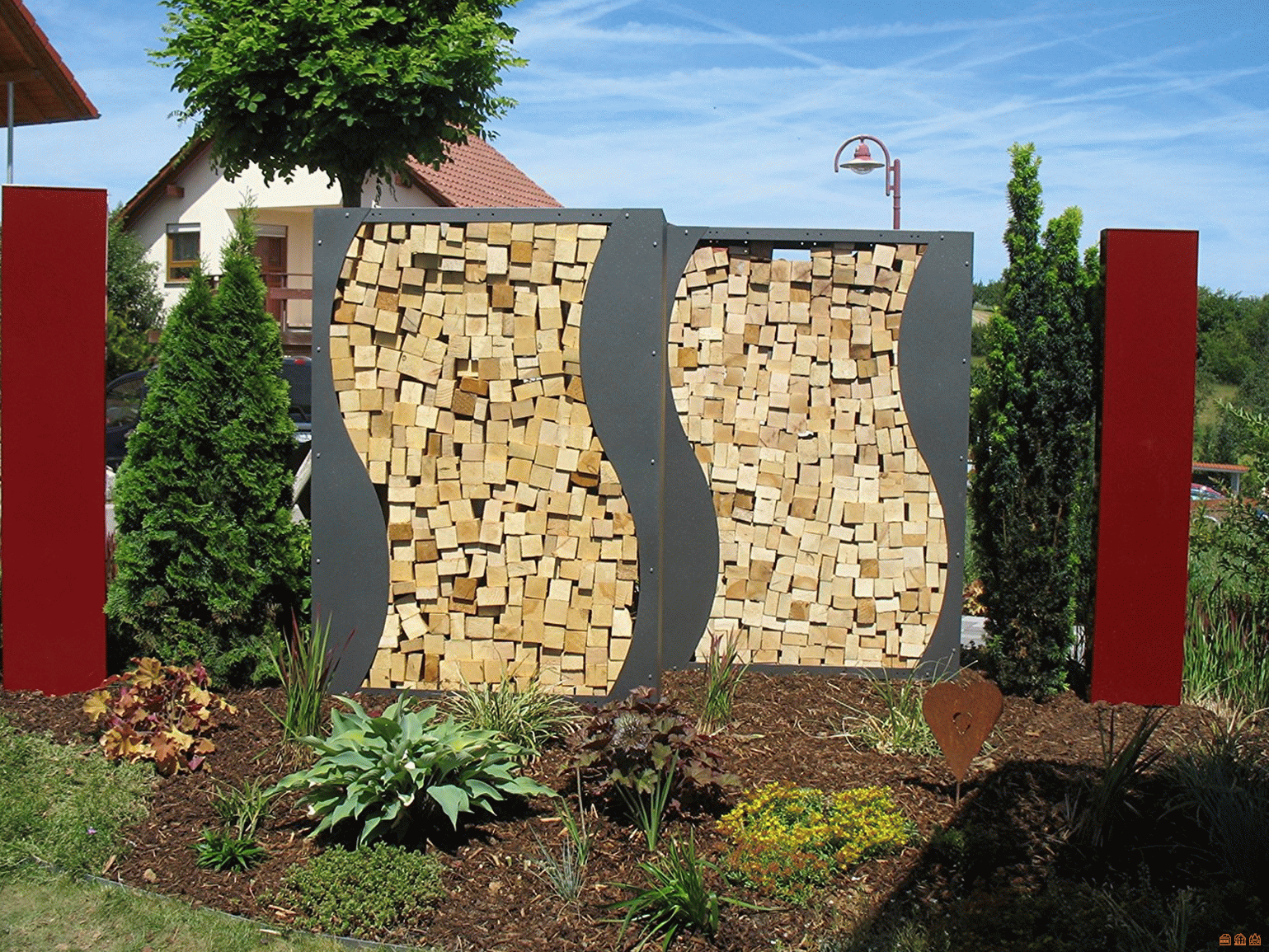 Декоративная поленница в саду
