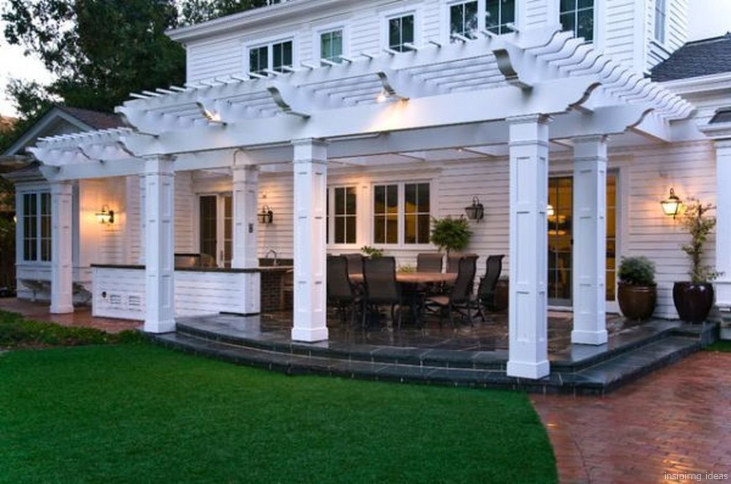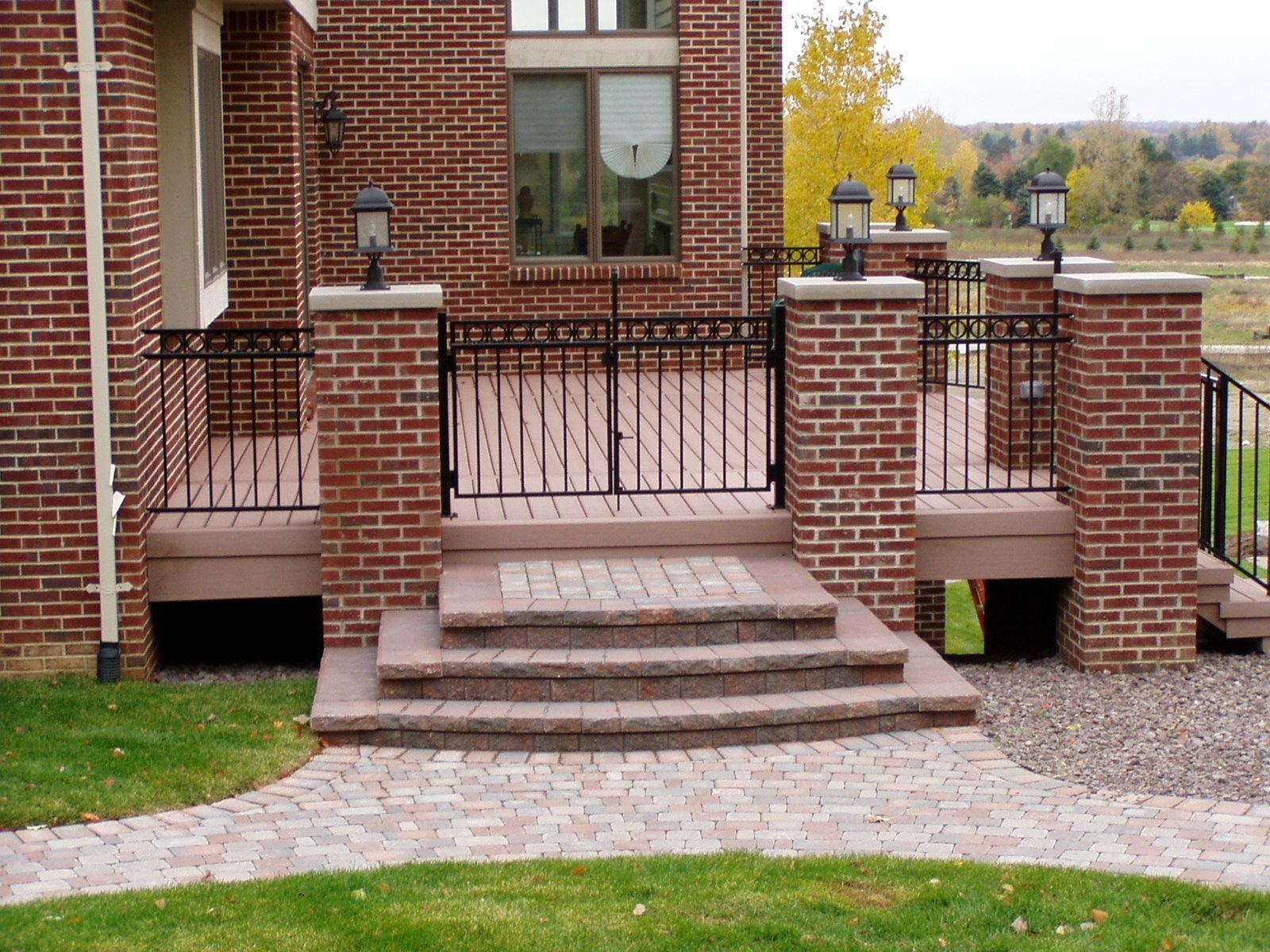 Терраса с кирпичными столбами