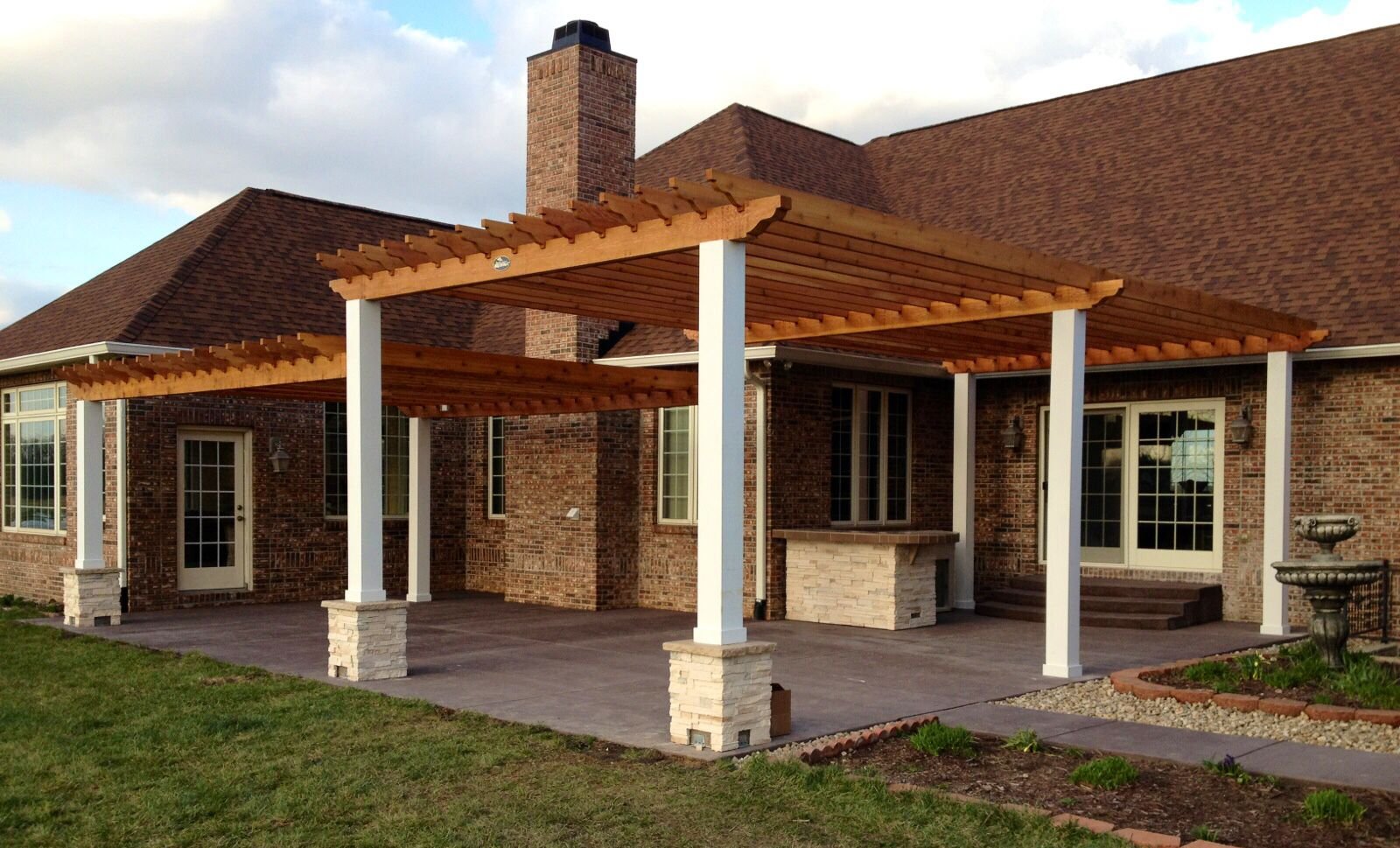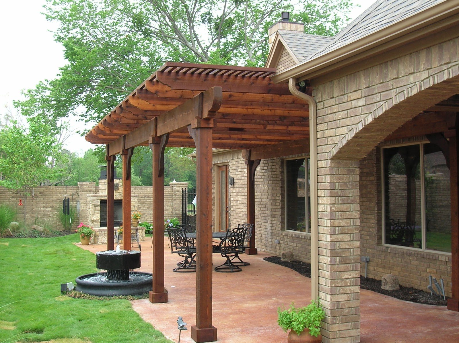 Беседка с кирпичными колоннами