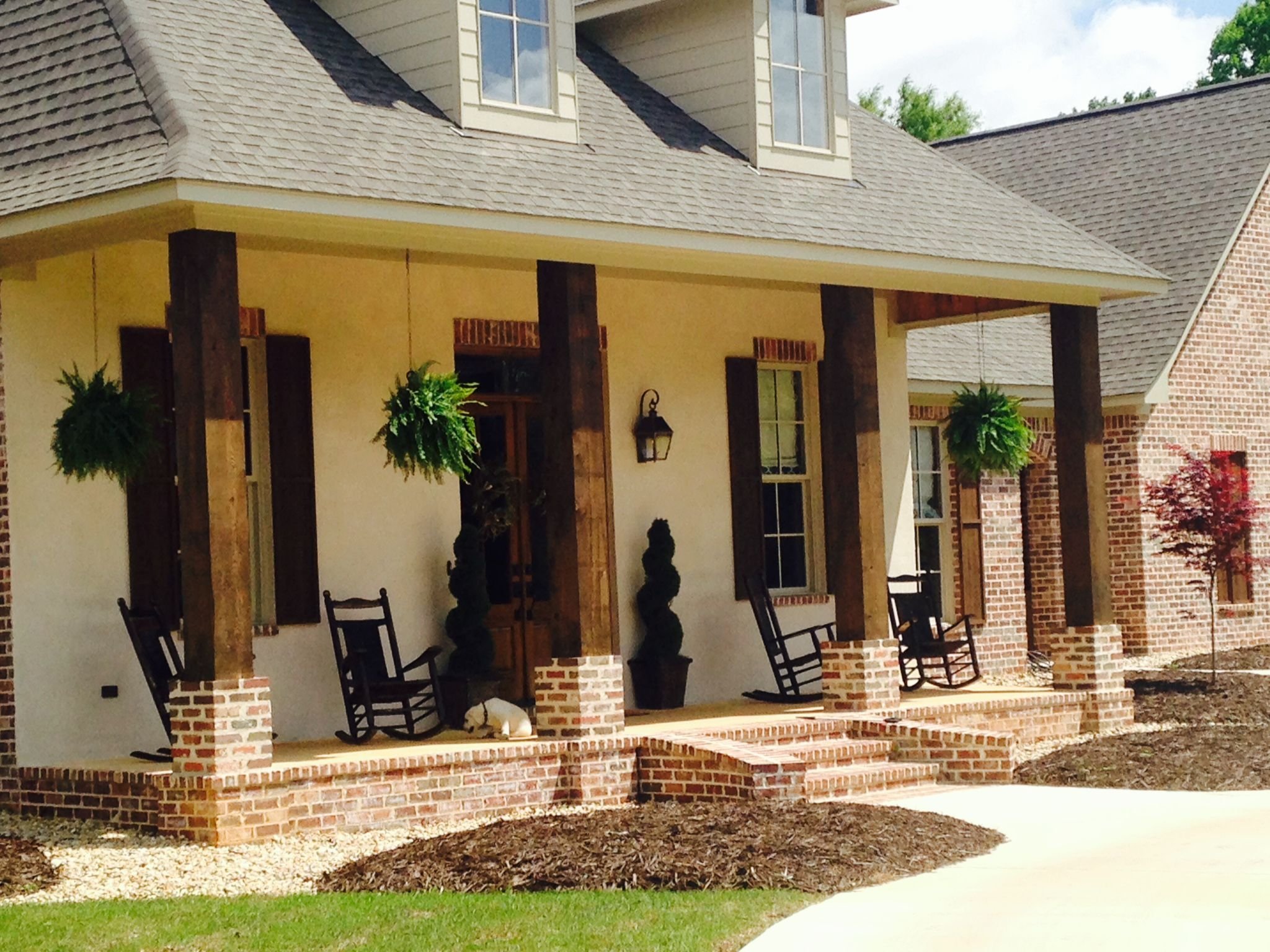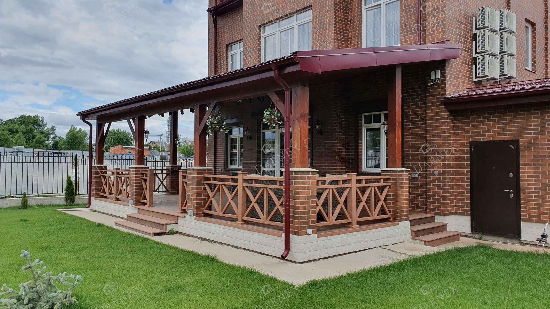 Веранда с кирпичными столбами
