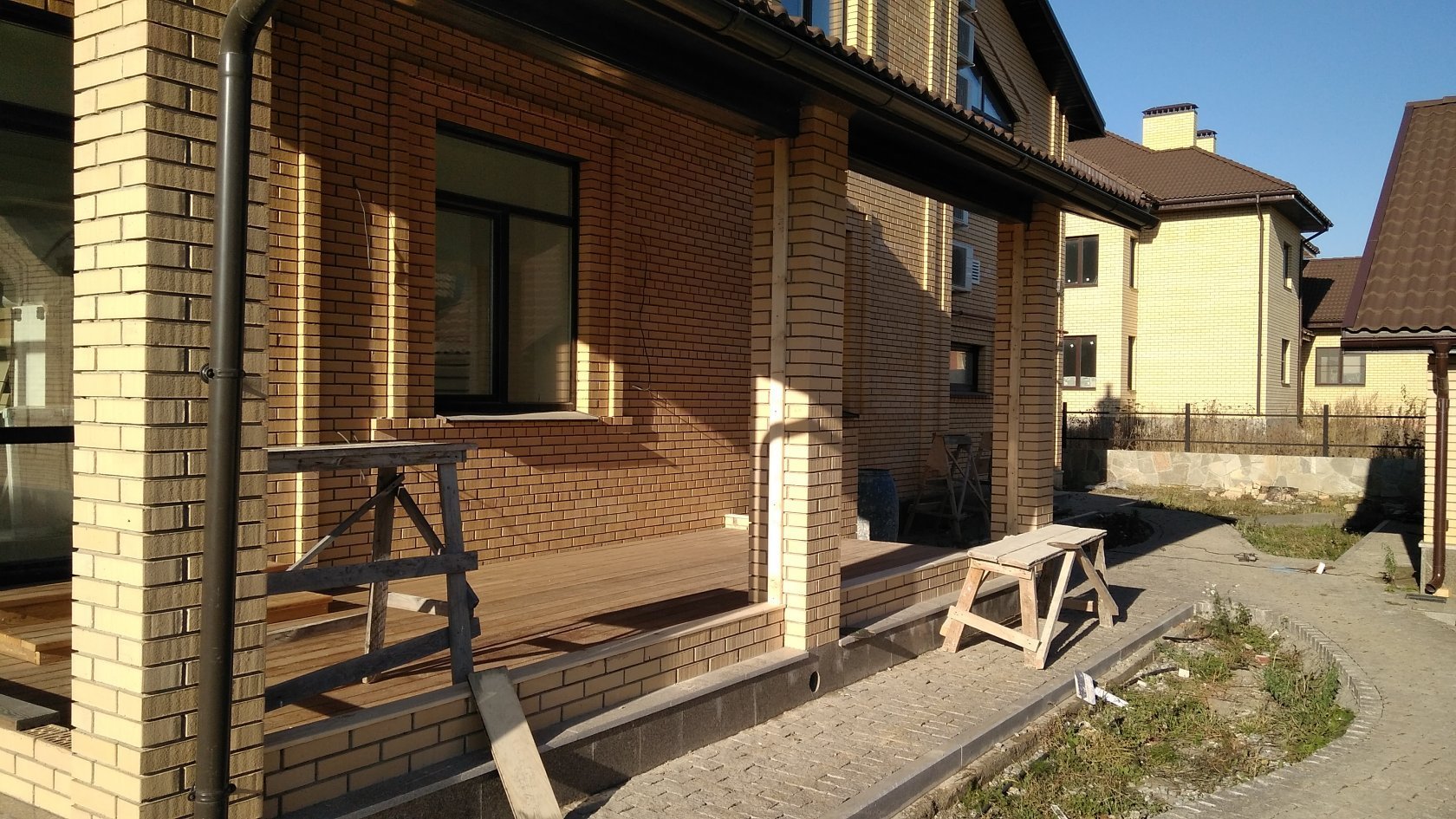 Терраса к кирпичному дому