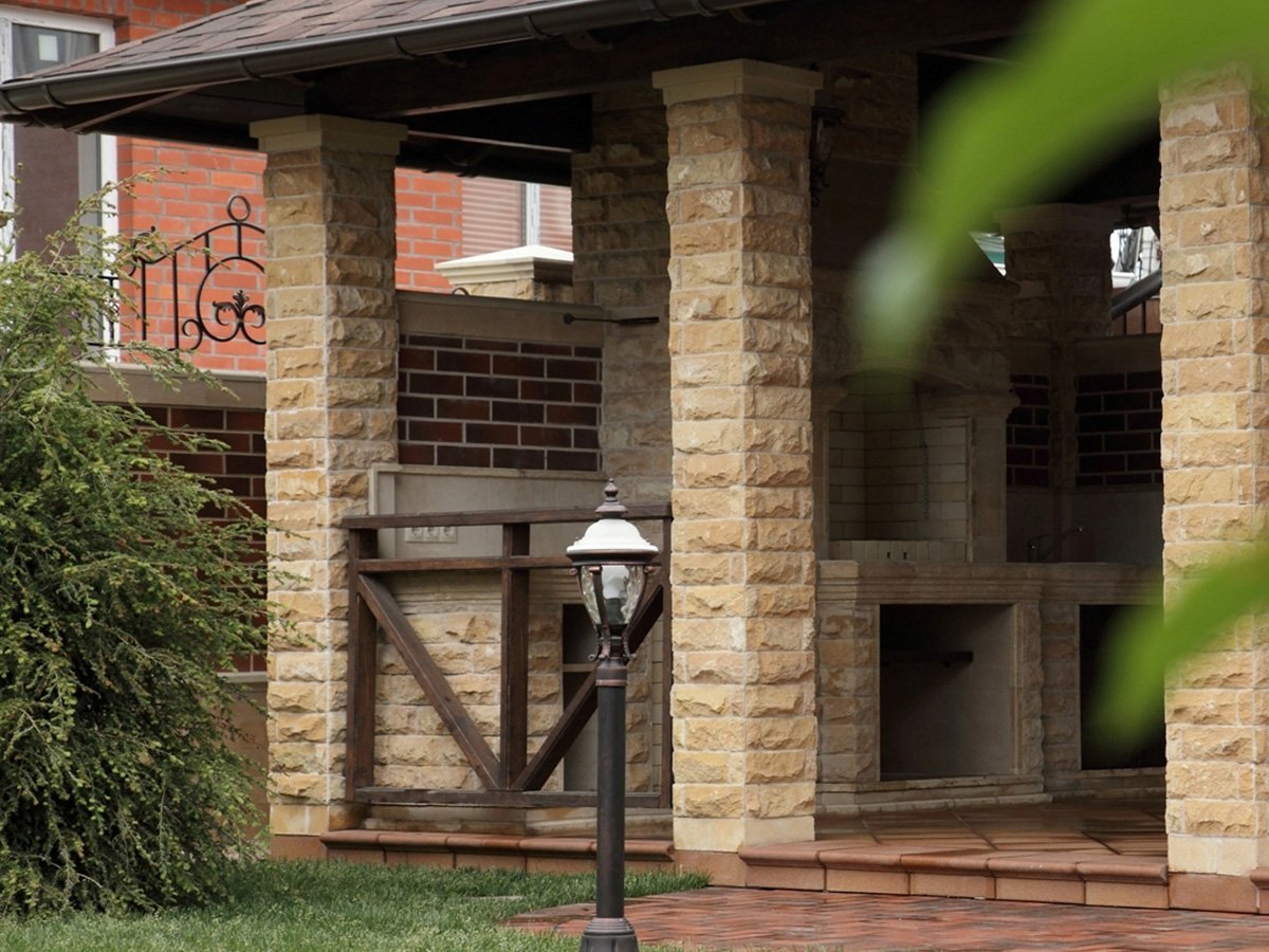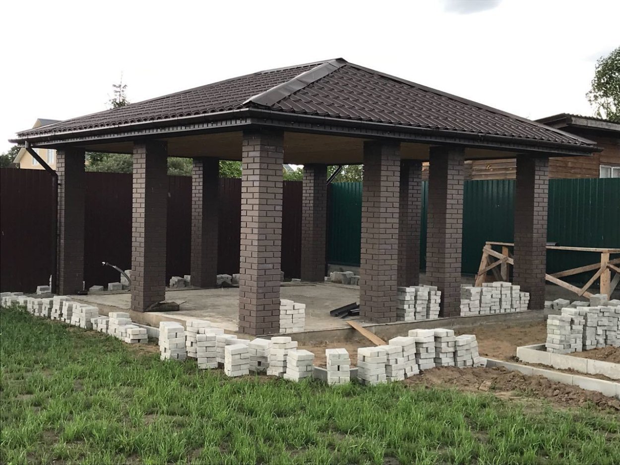 Беседка с колоннами из кирпича