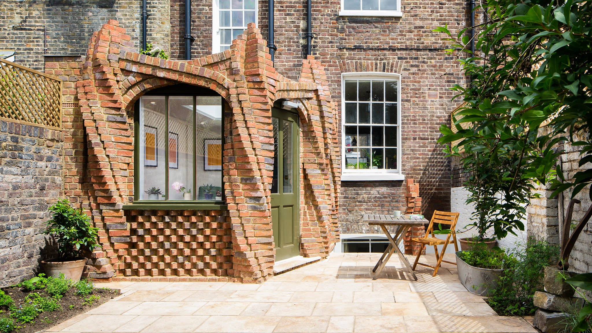 Терраса из кирпича и дерева