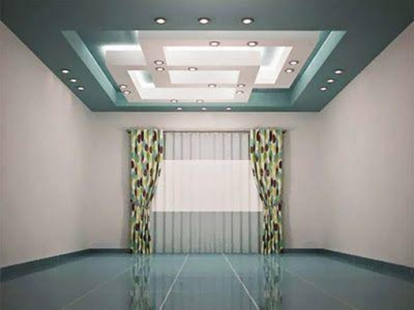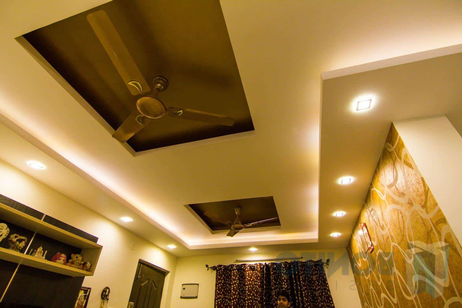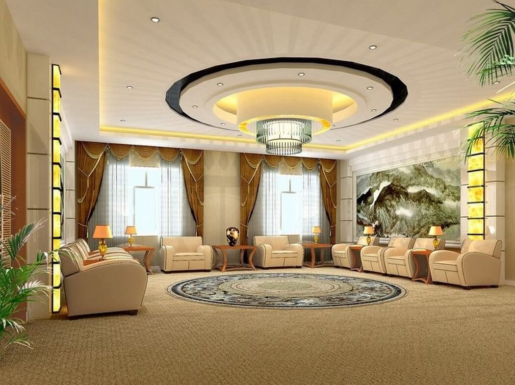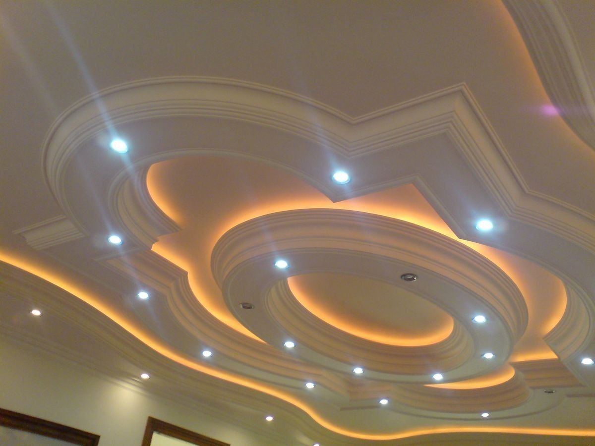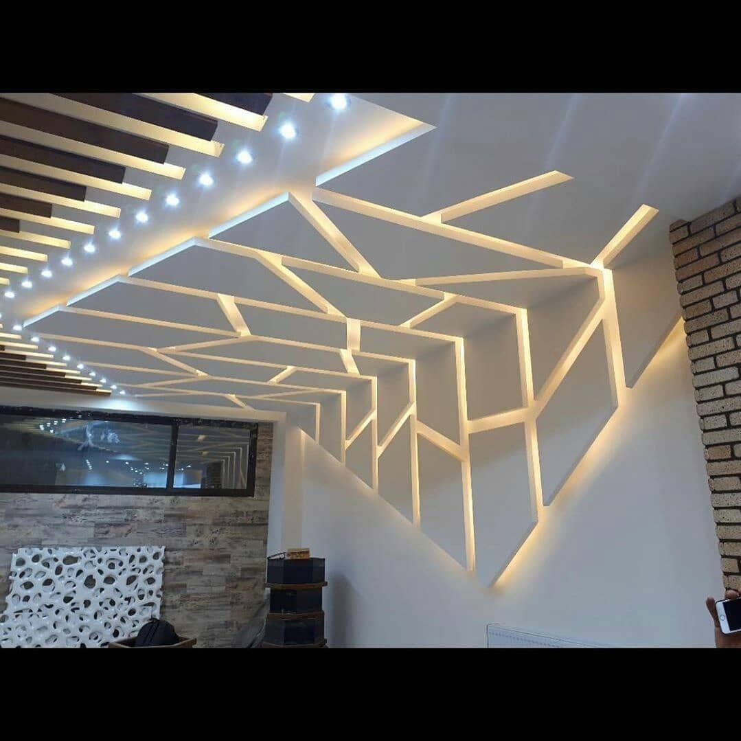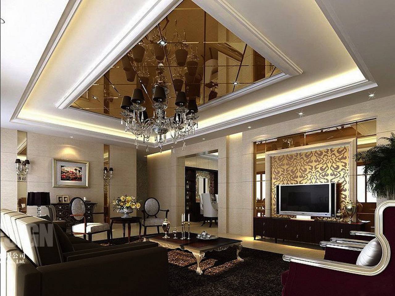 Потолок из гипсокартона для гостиной фигурный с подсветкой