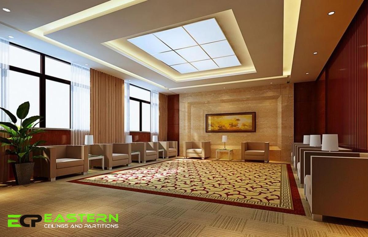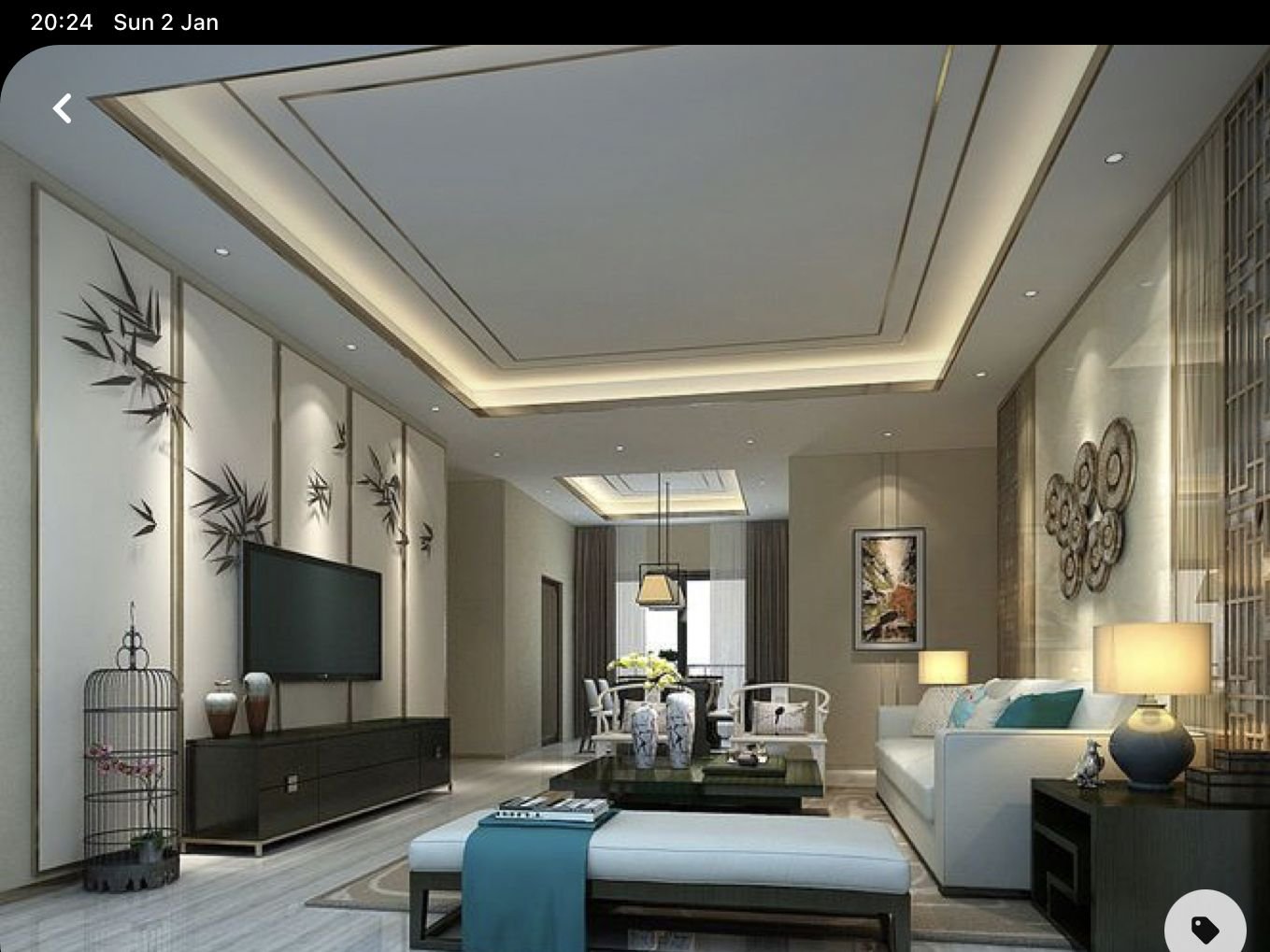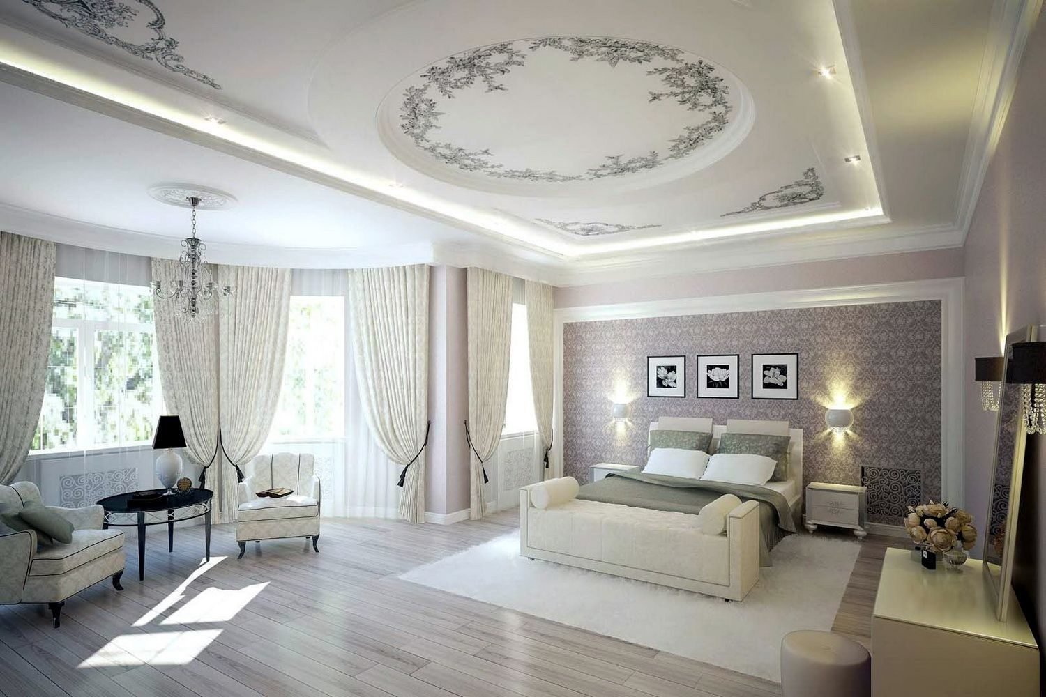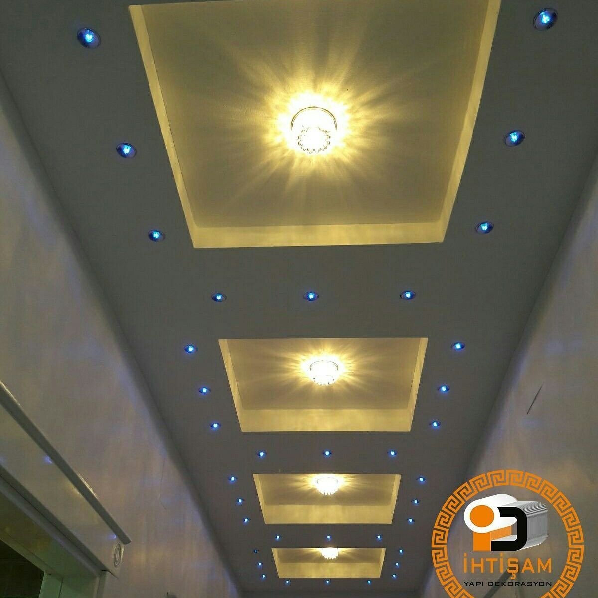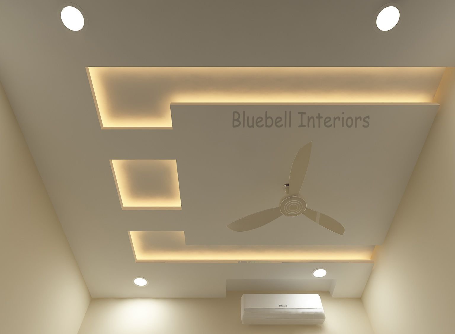 Потолок из гипсокартона для гостиной фигурный с подсветкой