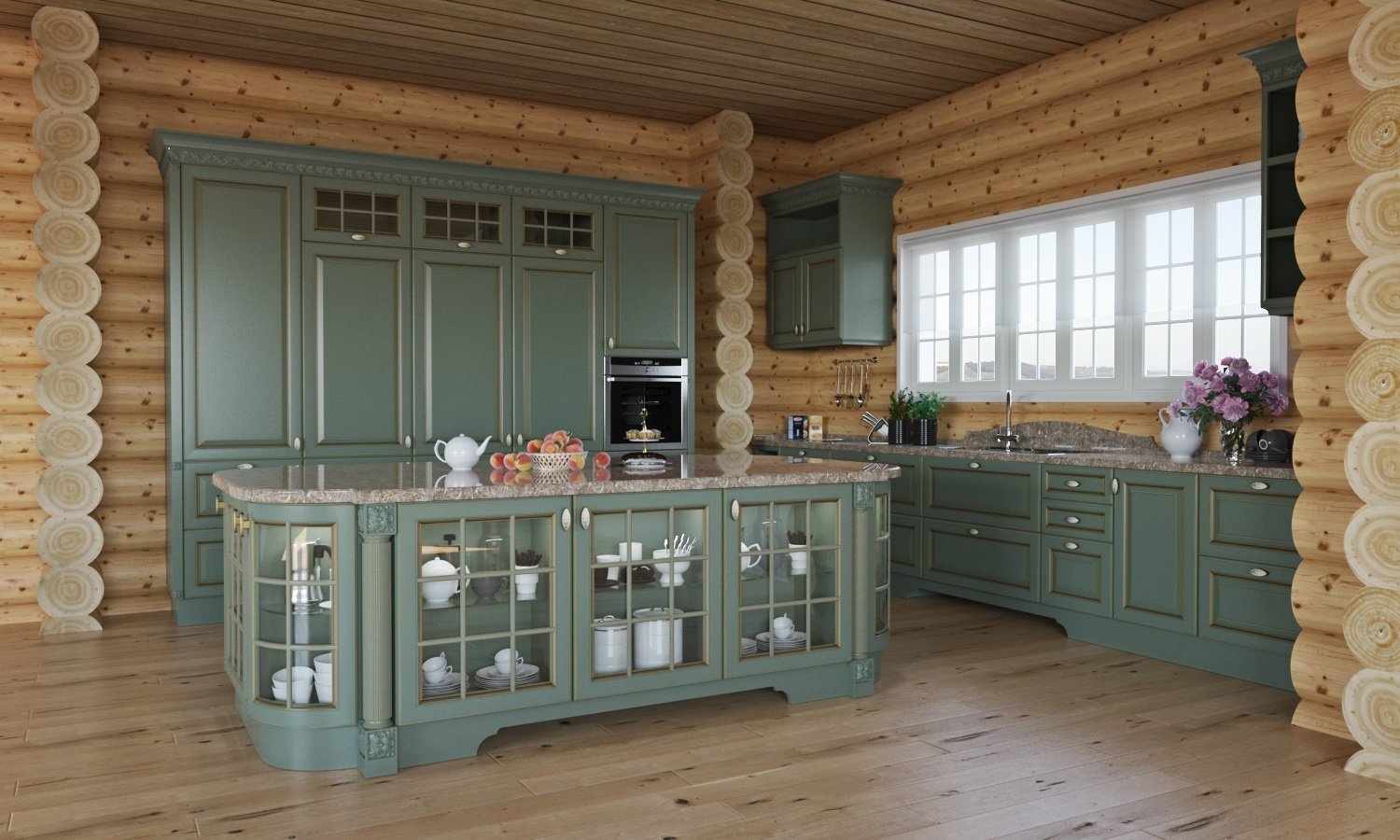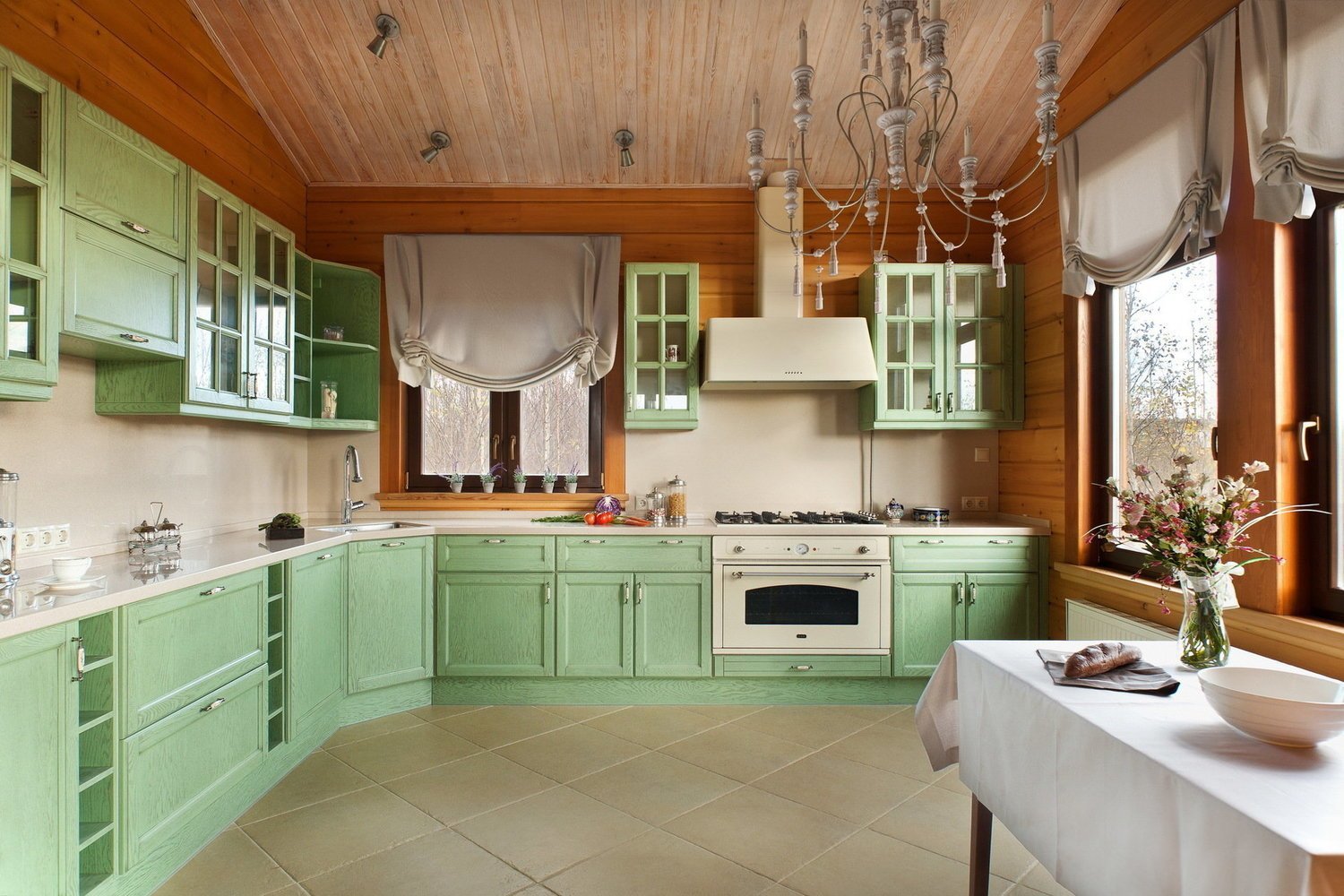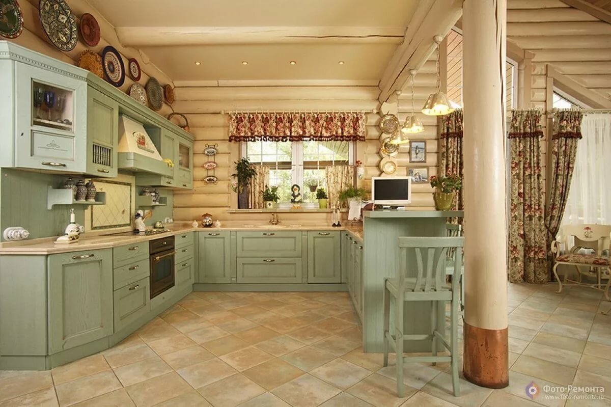 Кухни в стиле Прованс в срубовом доме