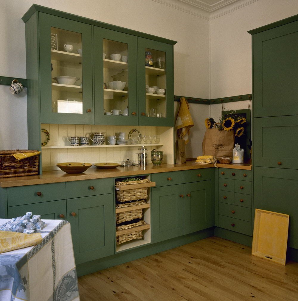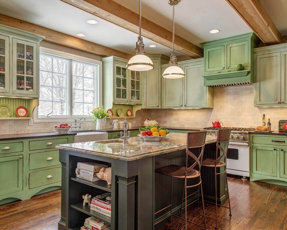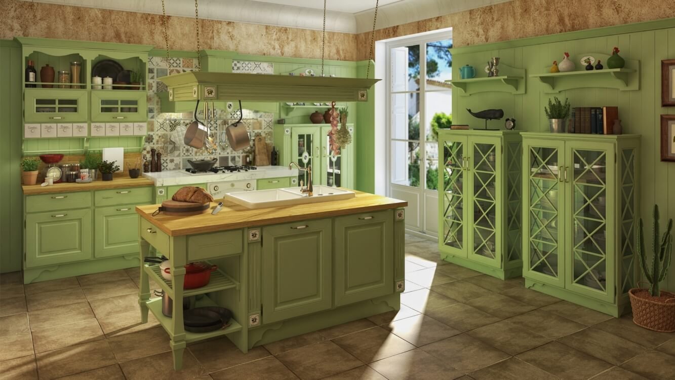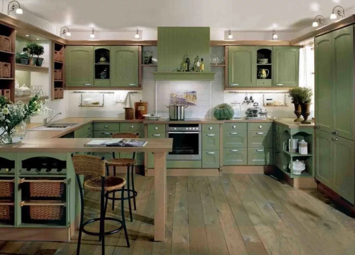 Зеленая кухня в стиле Кантри