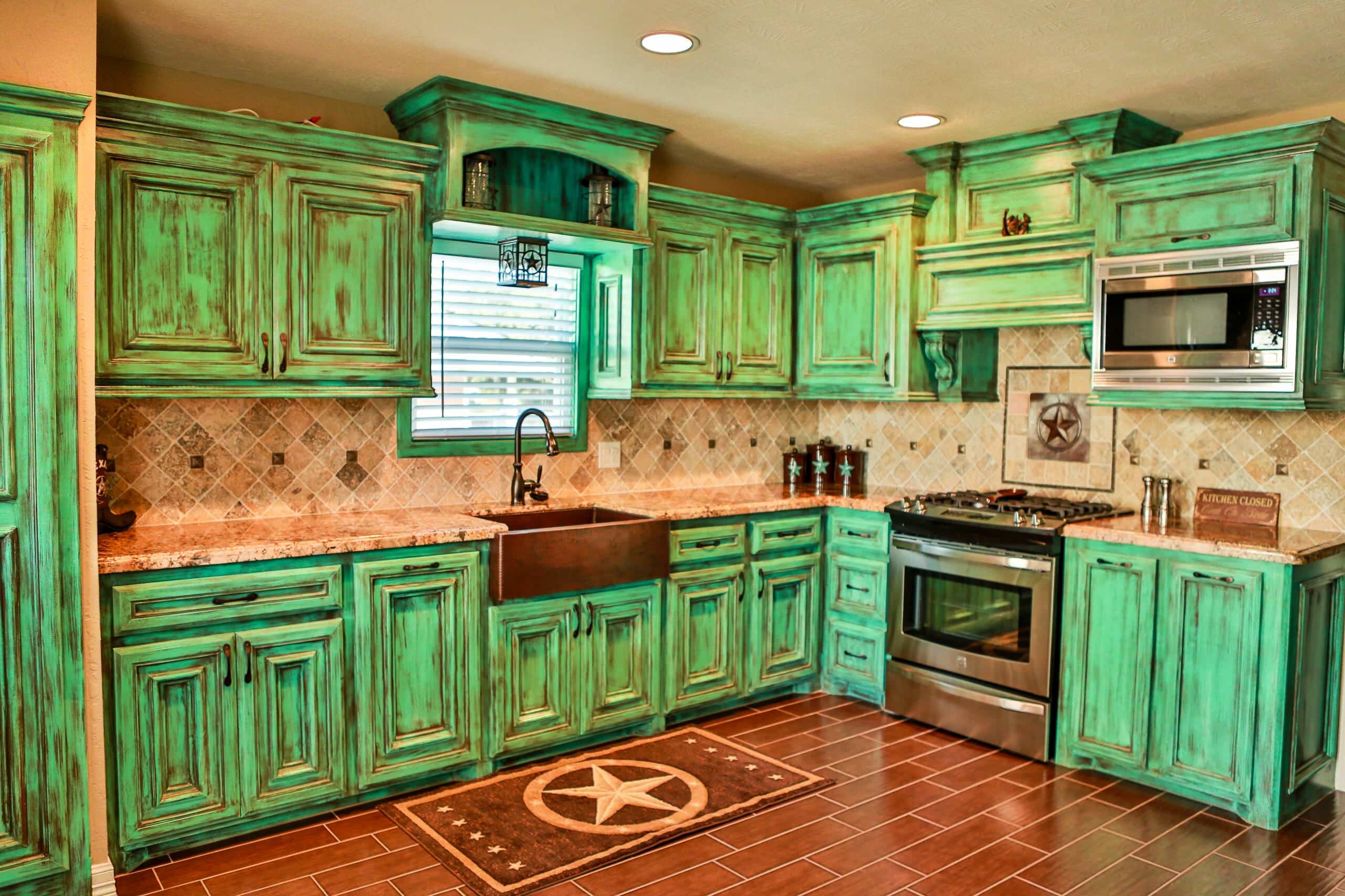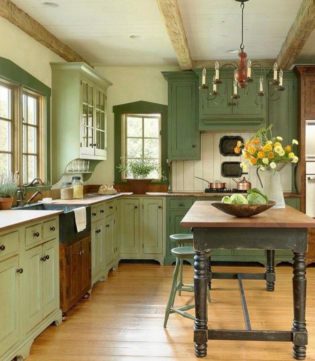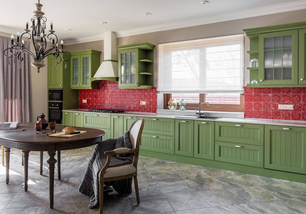 Зеленая кухня в стиле Кантри