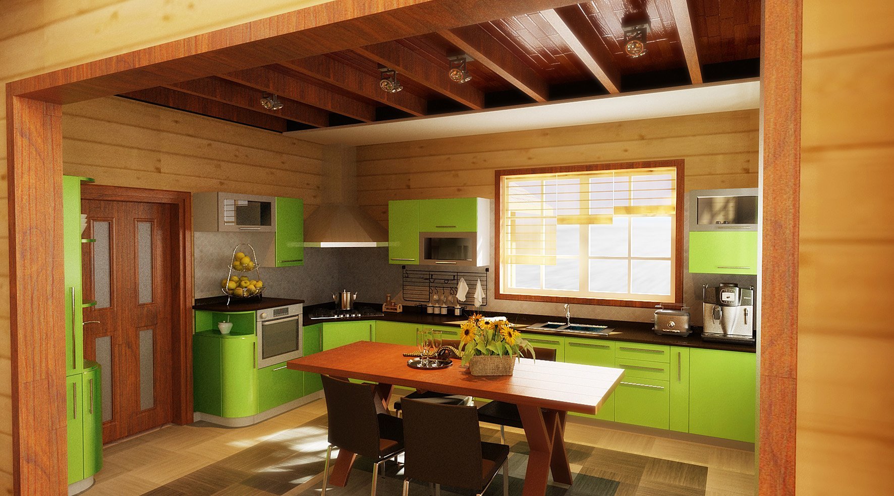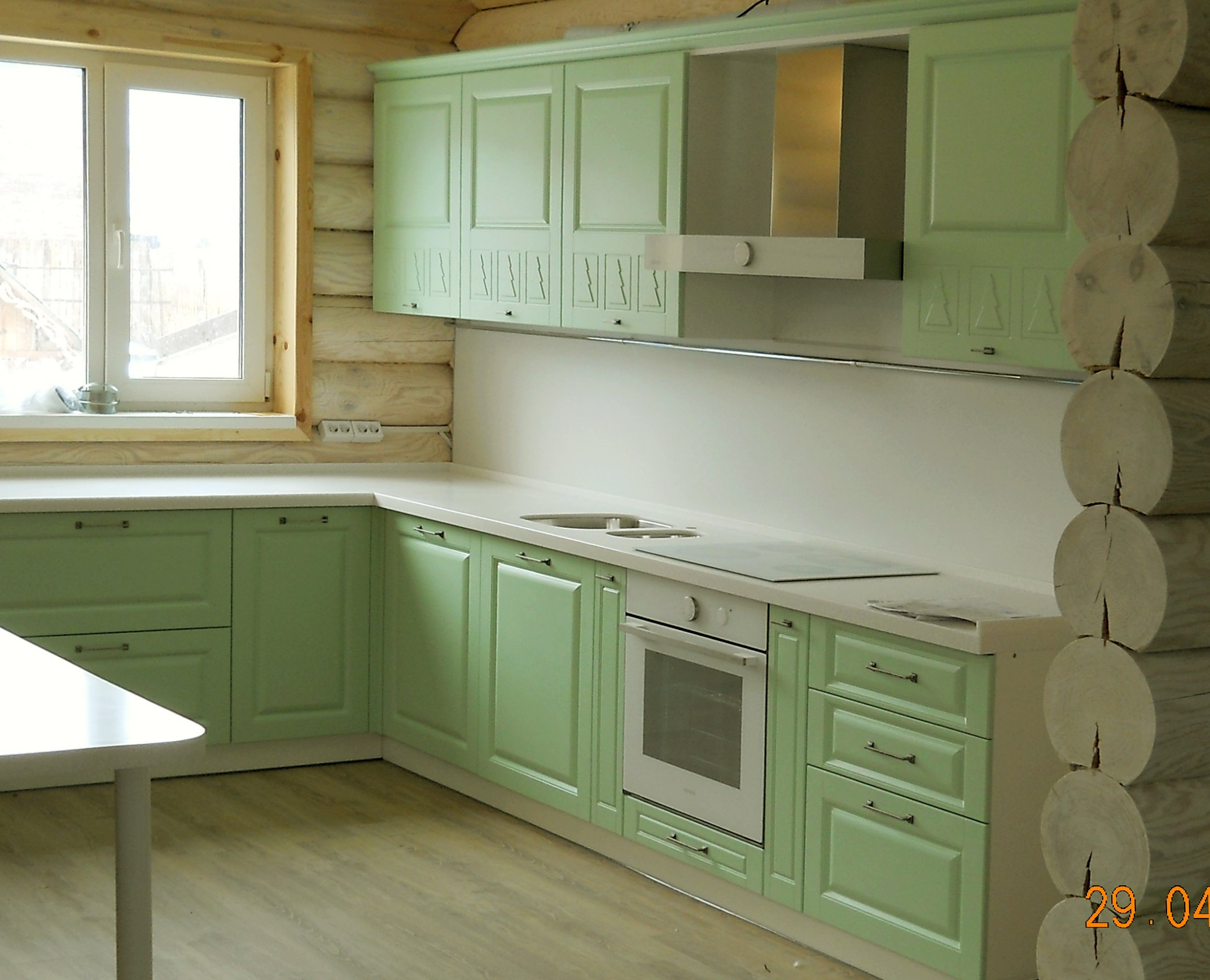 Фисташковая кухня в деревянном доме