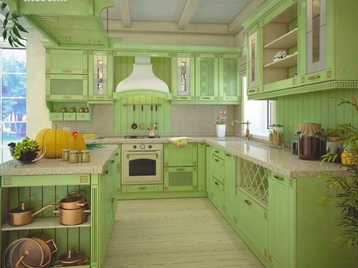Фисташковая кухня в интерьере в стиле Прованс