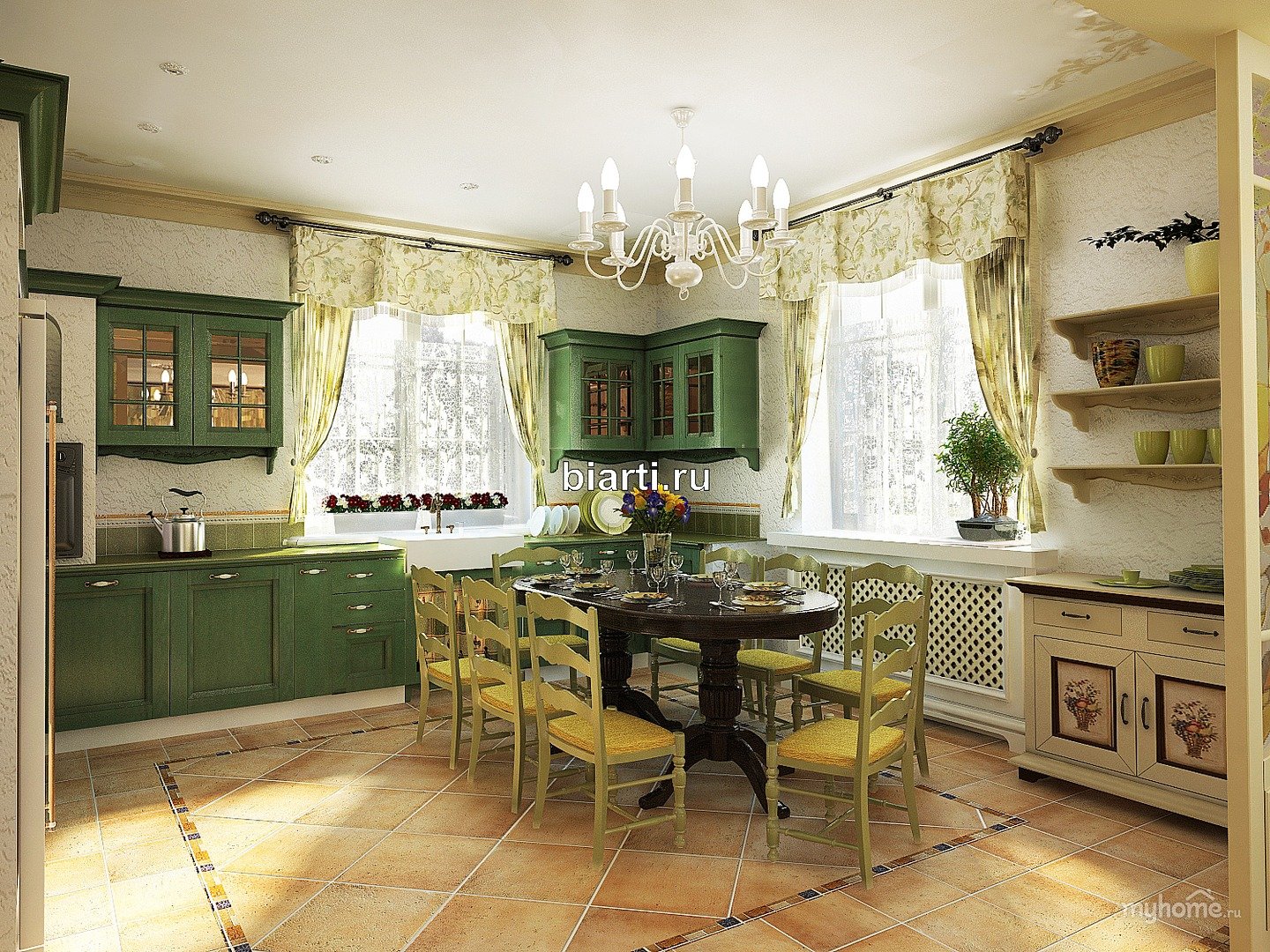 Zelyonie кухни стиль Кантри