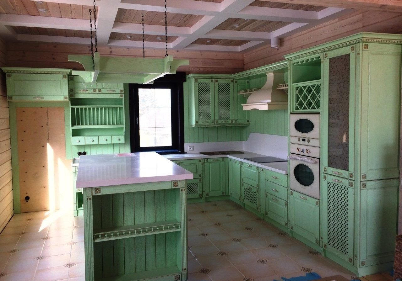 Кухни стиль Кантри патина сзелена