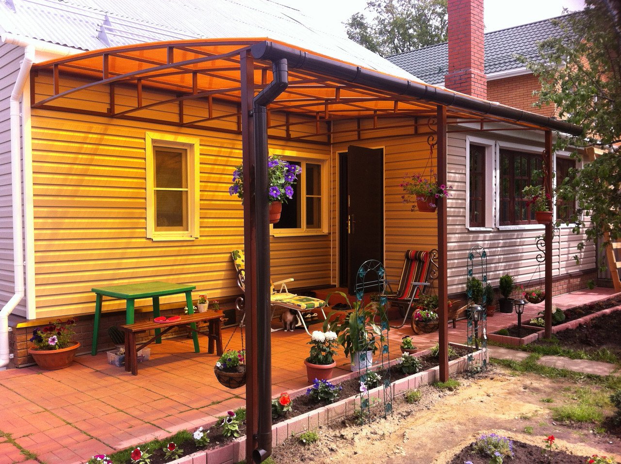 Навес пристройка к дому из поликарбоната
