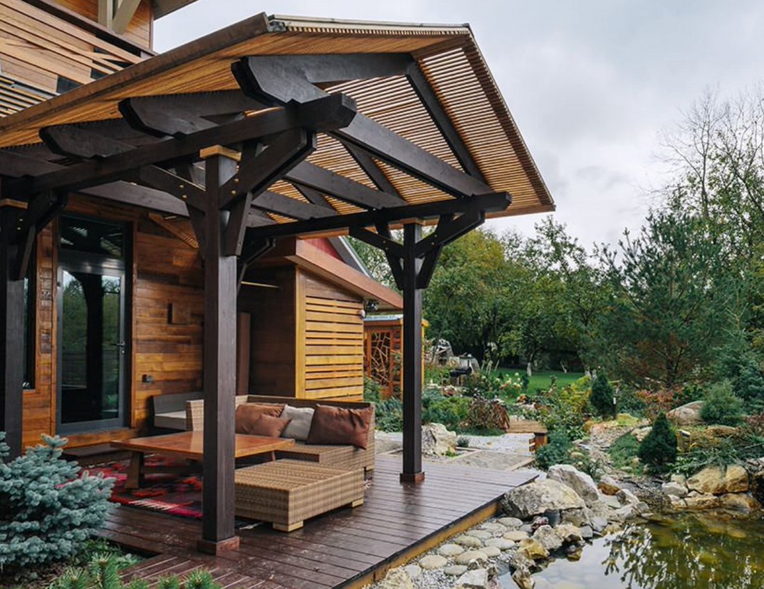 Деревянный навес над террасой