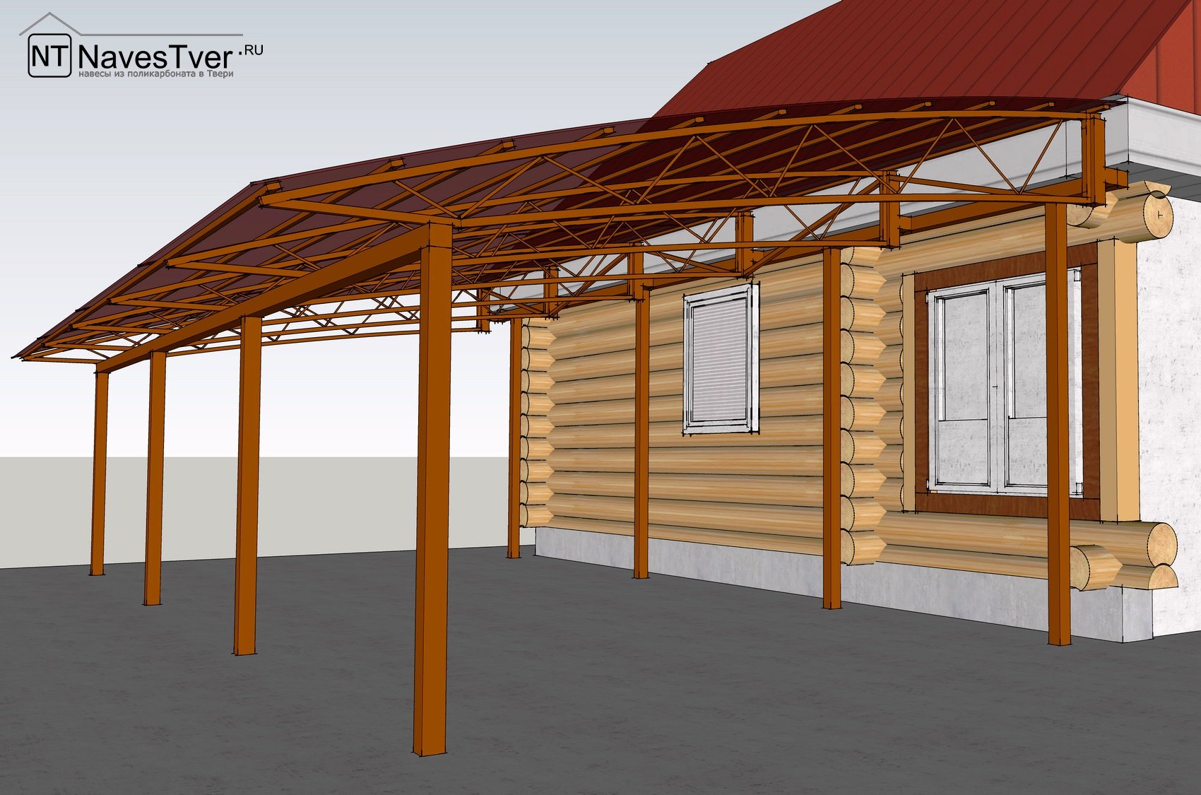 Навес к рубленому дому