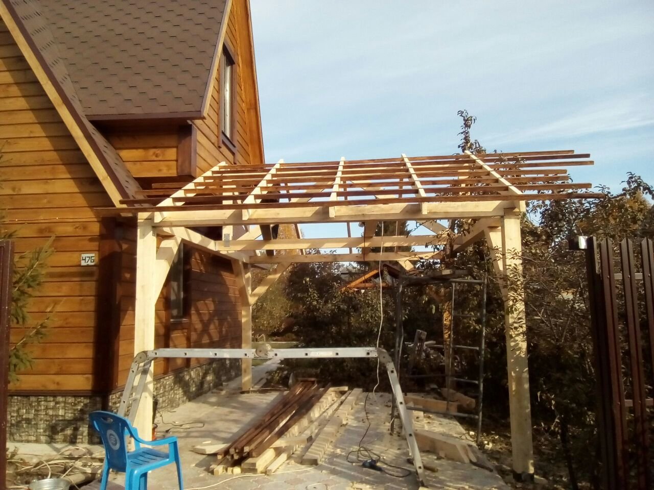 Деревянный навес к дому