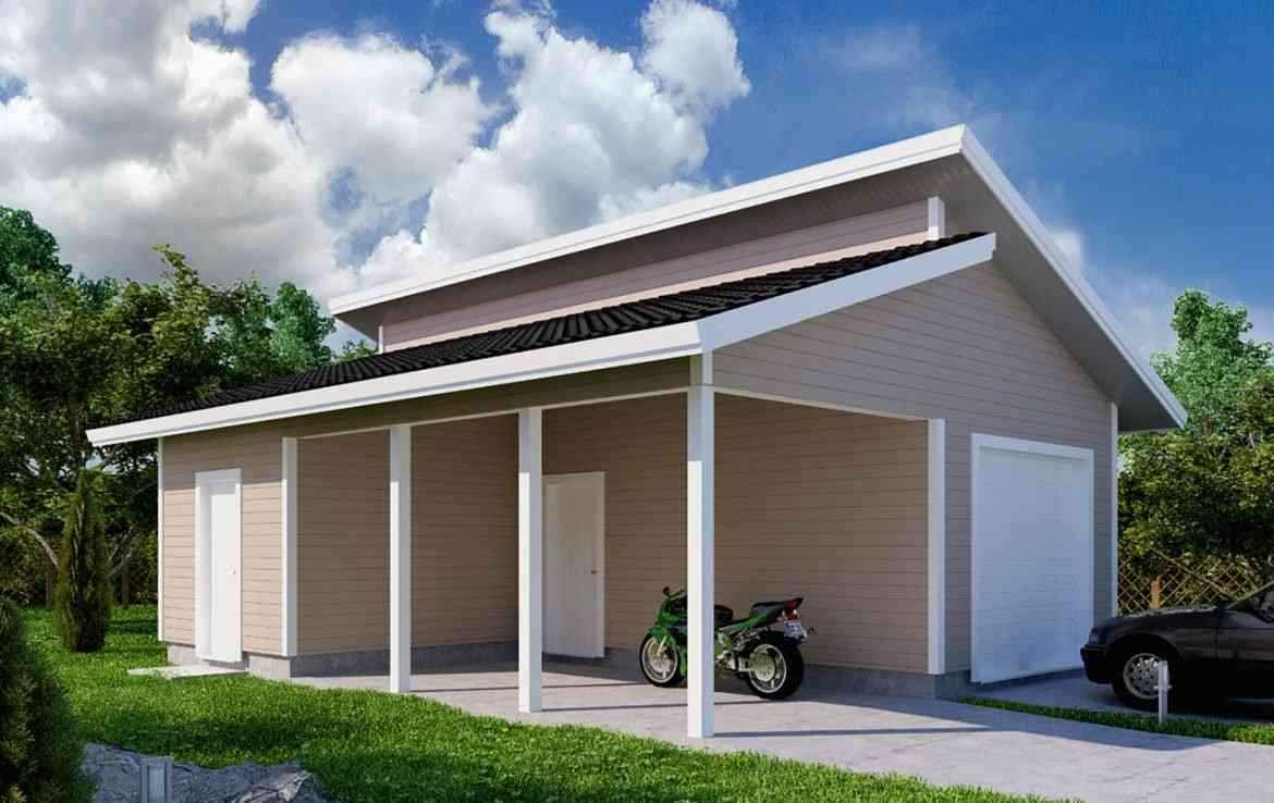 Проект гаража с навесом