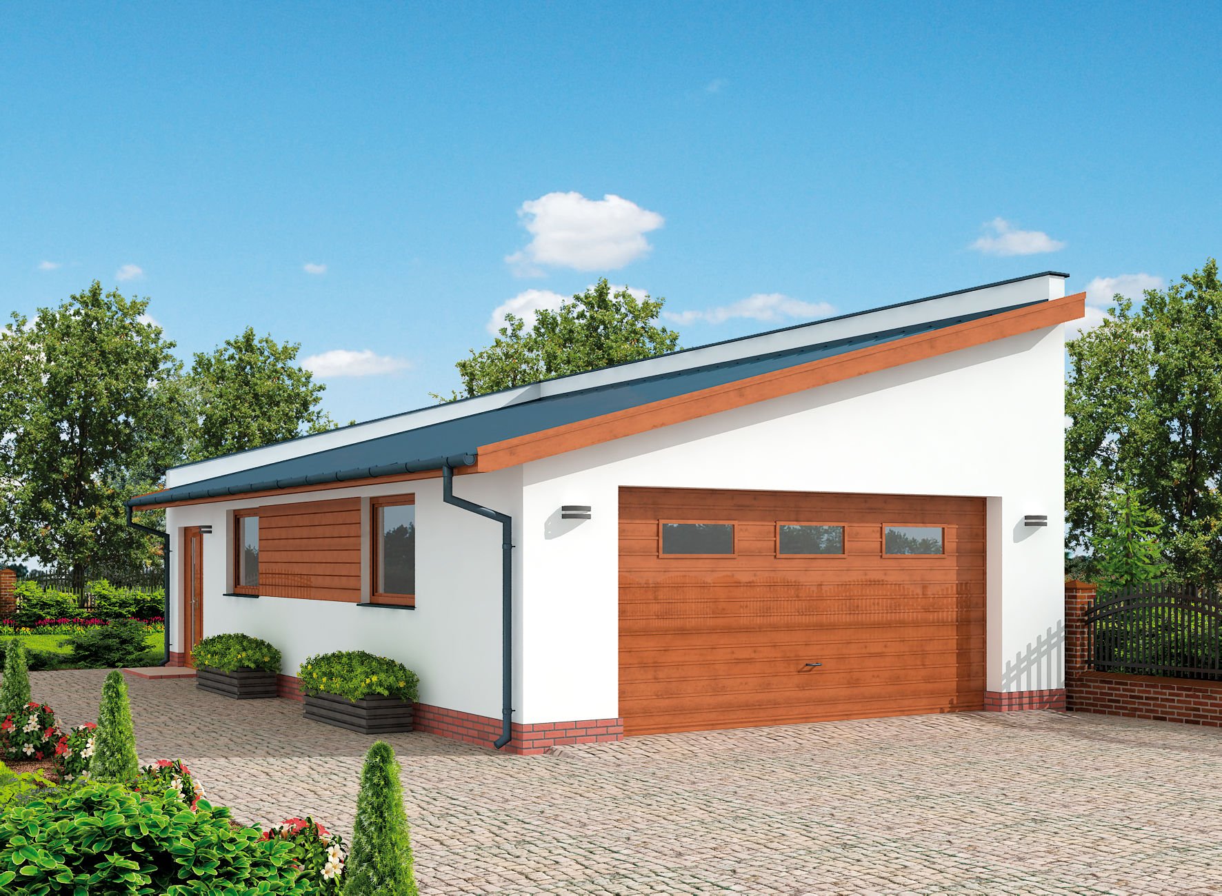 Гараж с мансардой с односкатной крышей