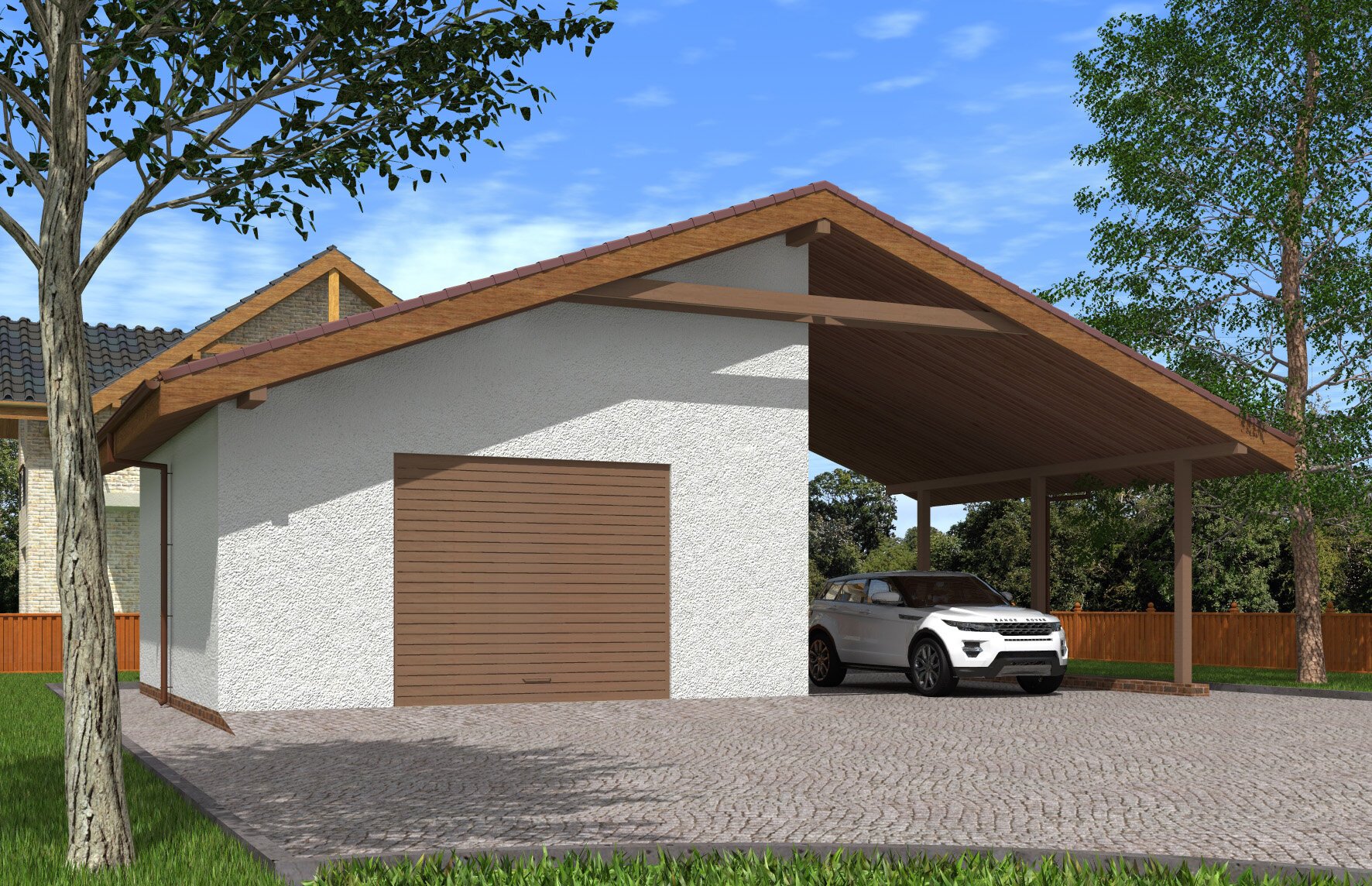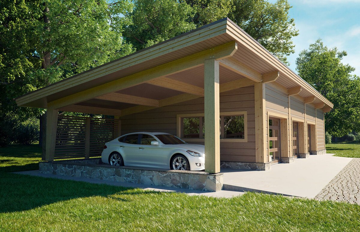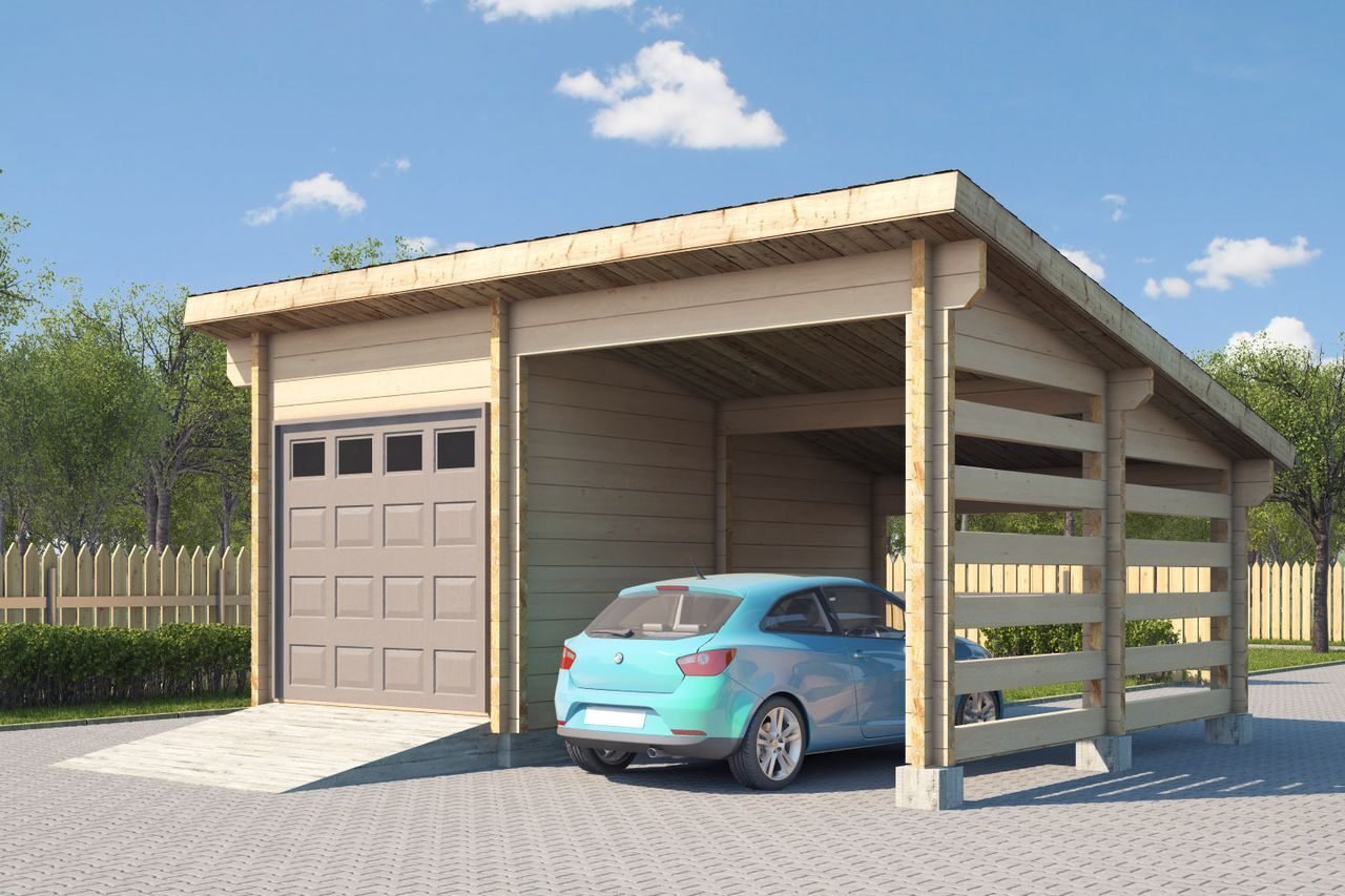 Гараж с навесом для машины