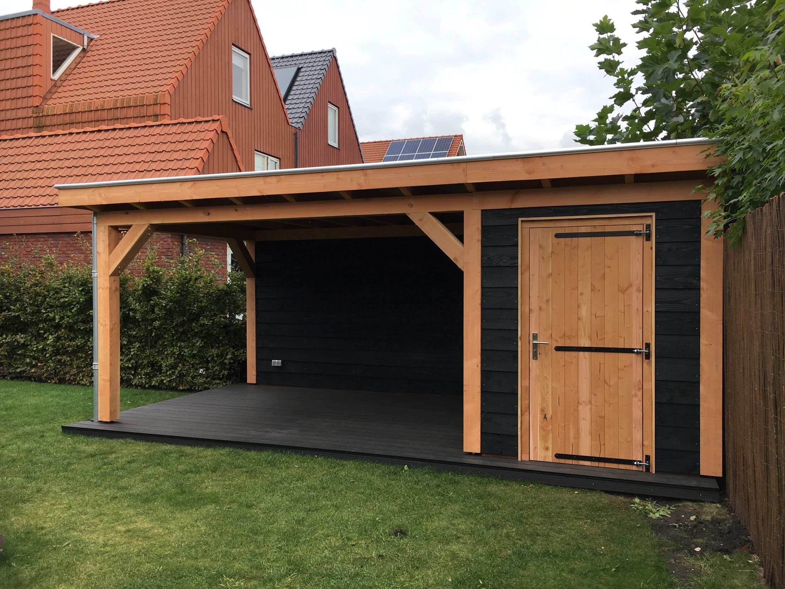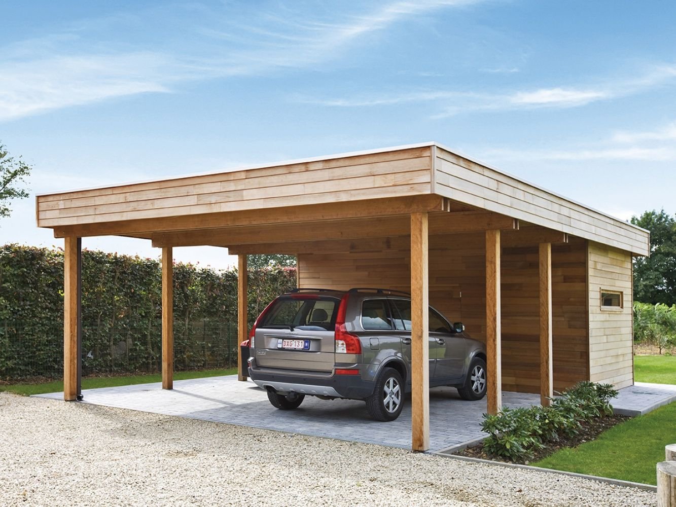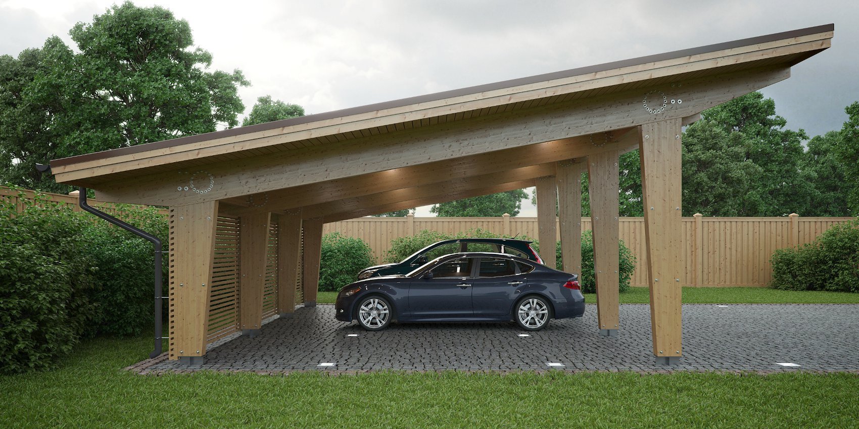 Односкатный навес для автомобиля из дерева