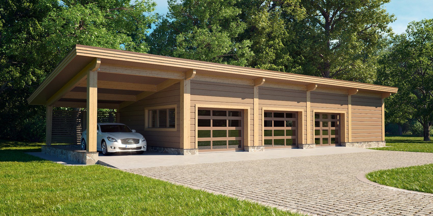 Гараж из клееного бруса с навесом