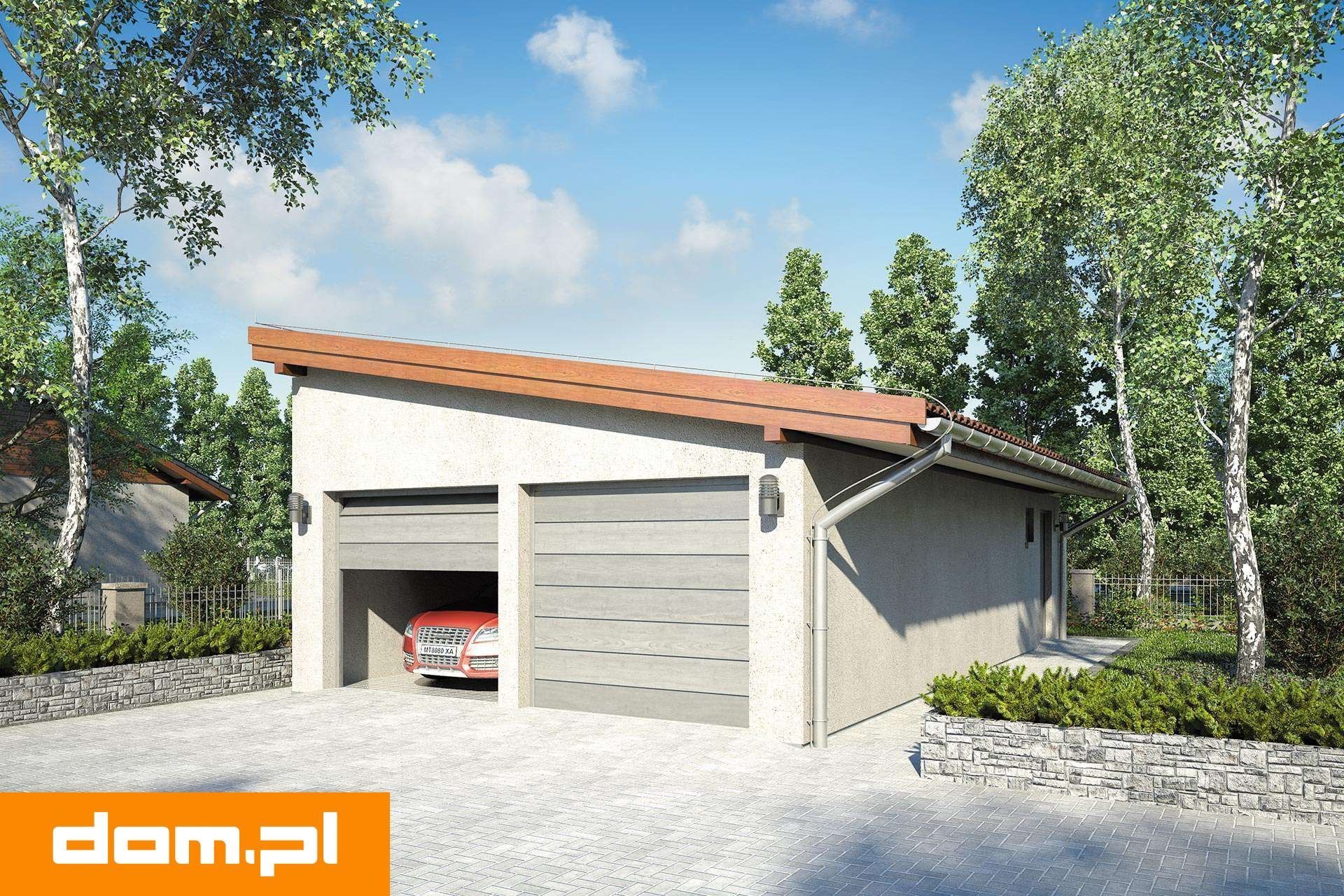 Гараж с плоской кровлей и навесом
