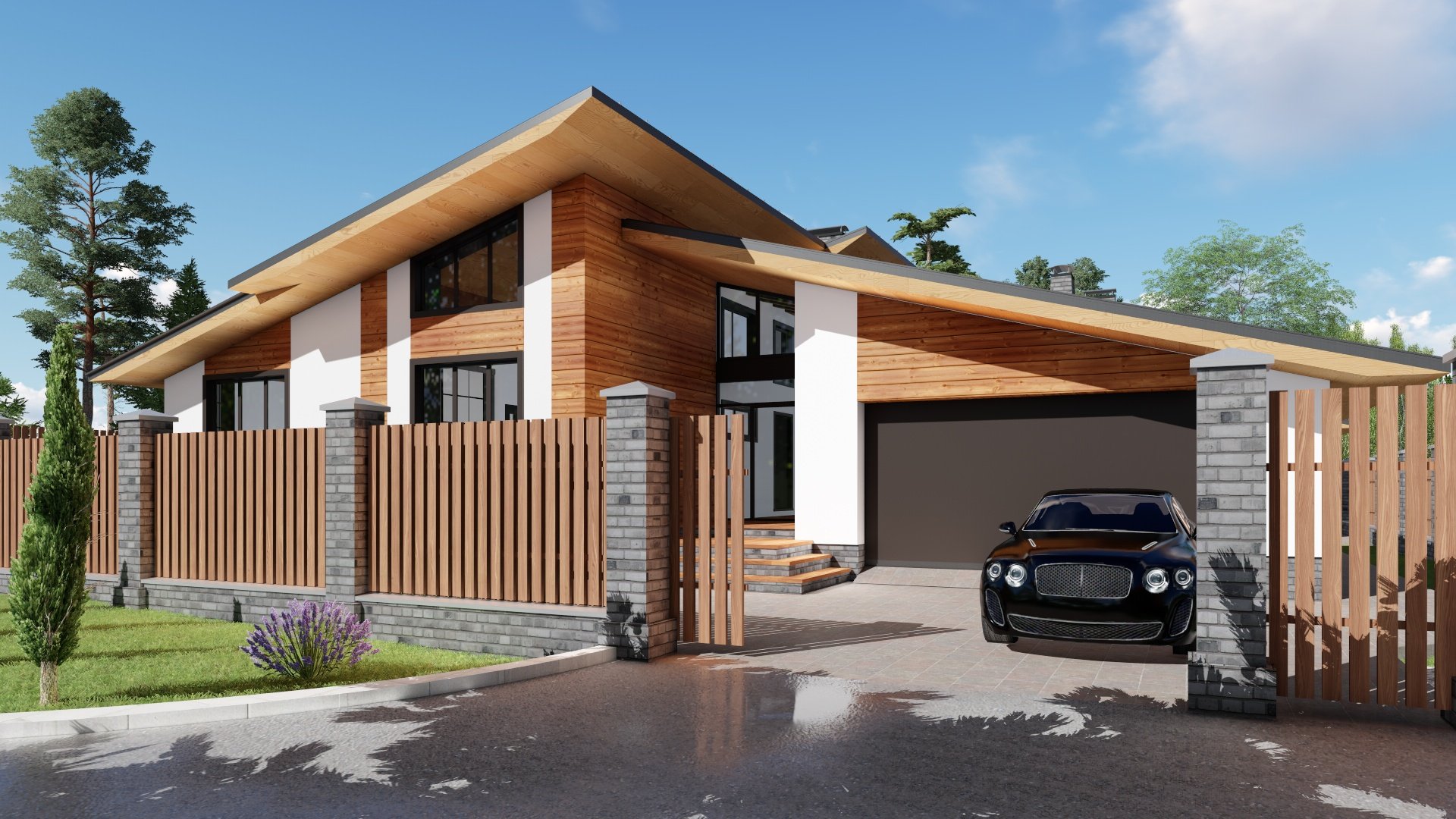Дом с навесом для машины