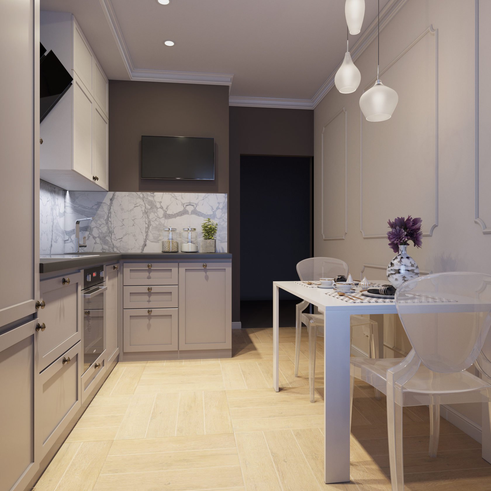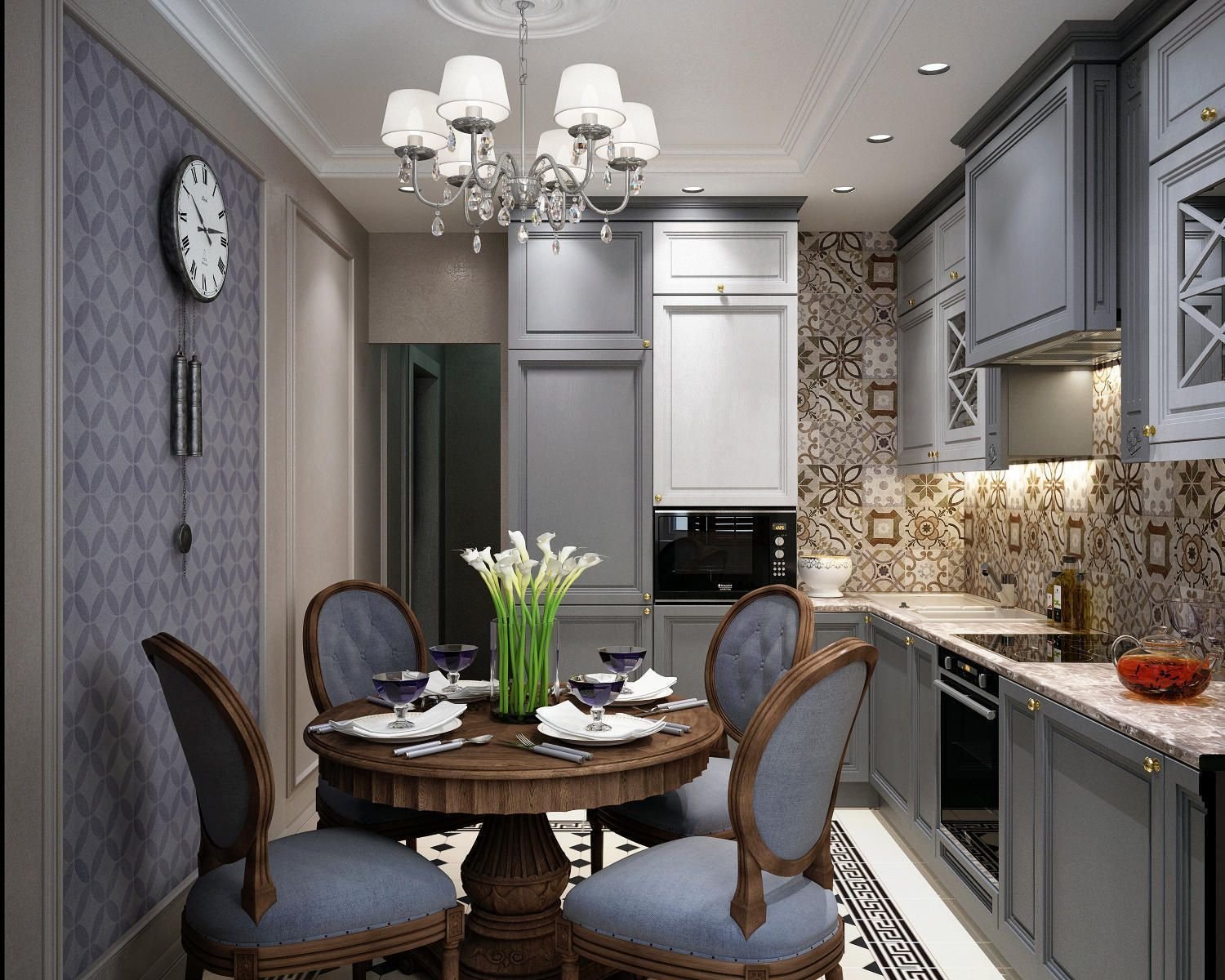 Кухня 7кв м в панельном доме Неоклассика