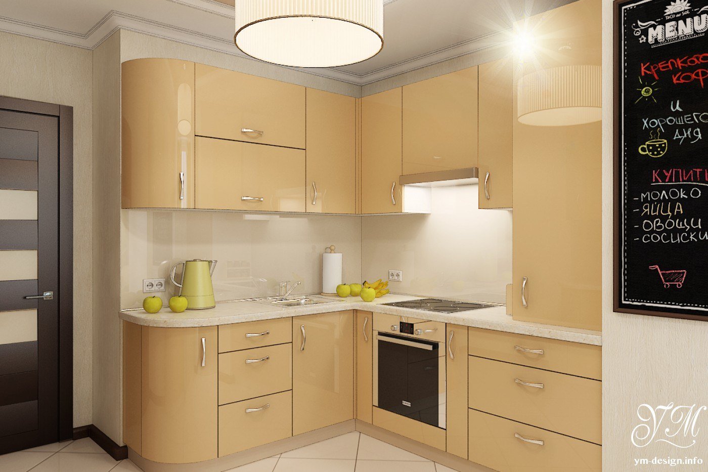 Интерьер кухни 9 кв м угловая