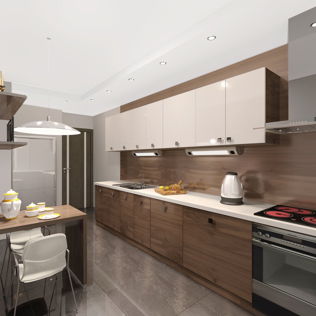 Интерьер прямоугольной кухни