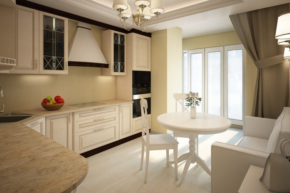 Интерьер кухни 11м2 с выходом на балкон