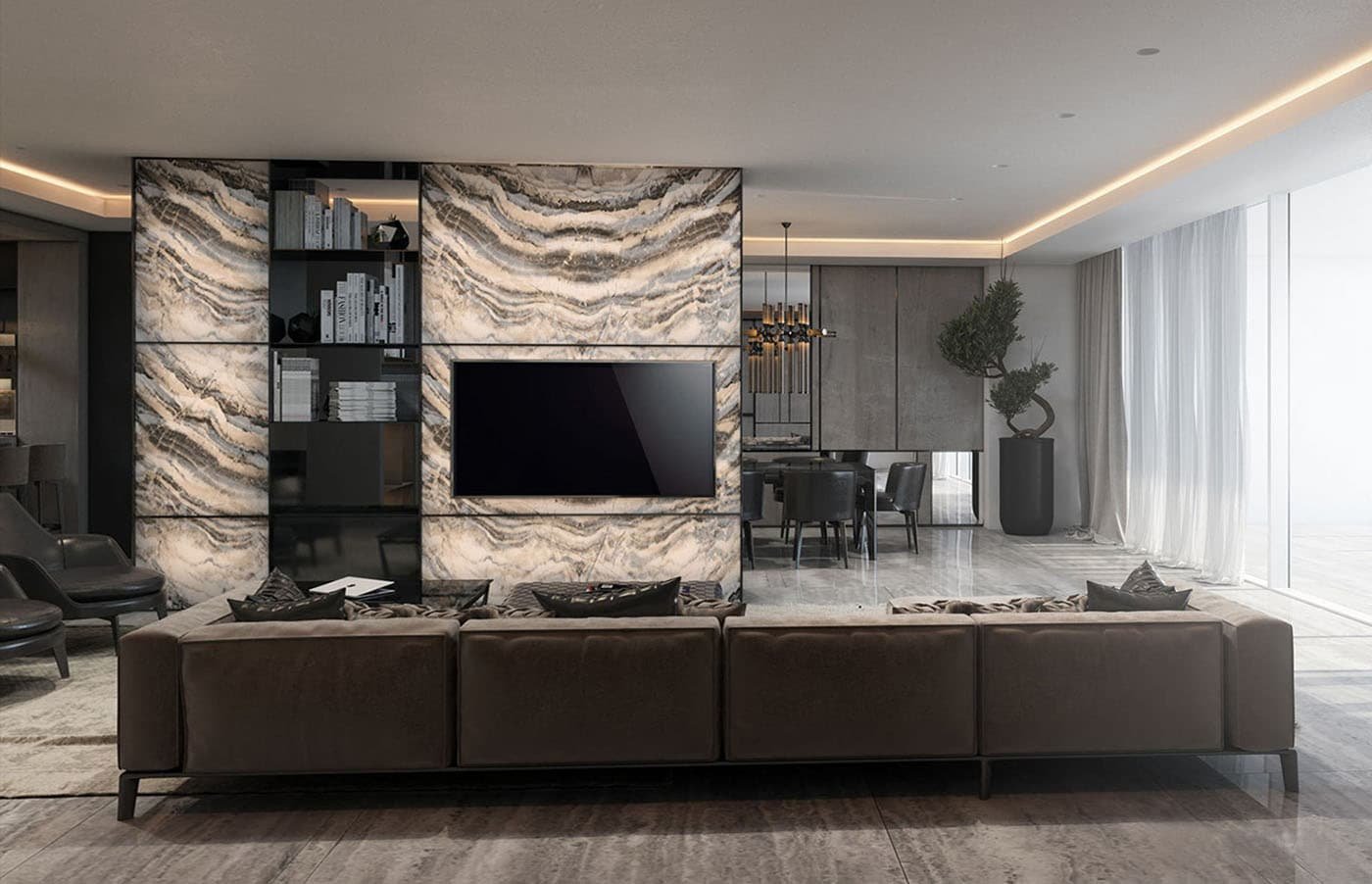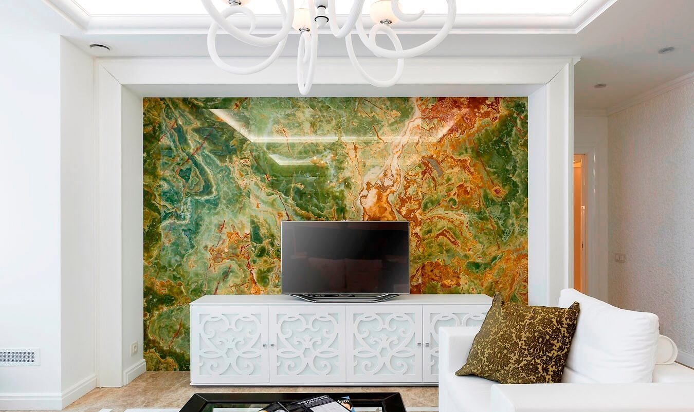 Оникс в интерьере гостиной