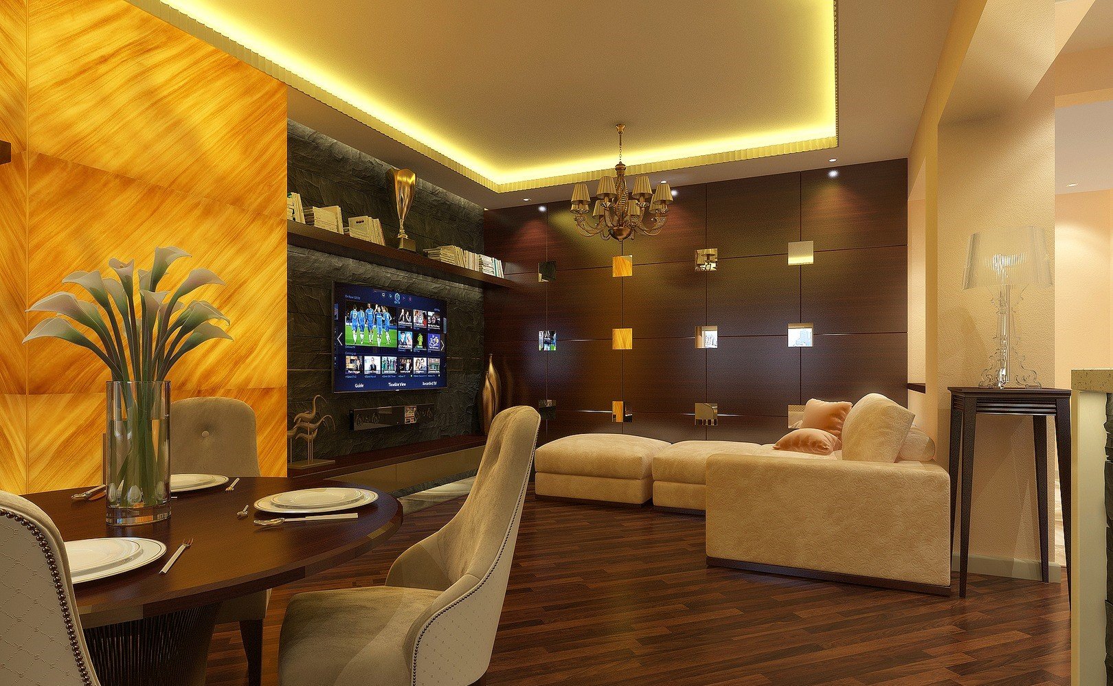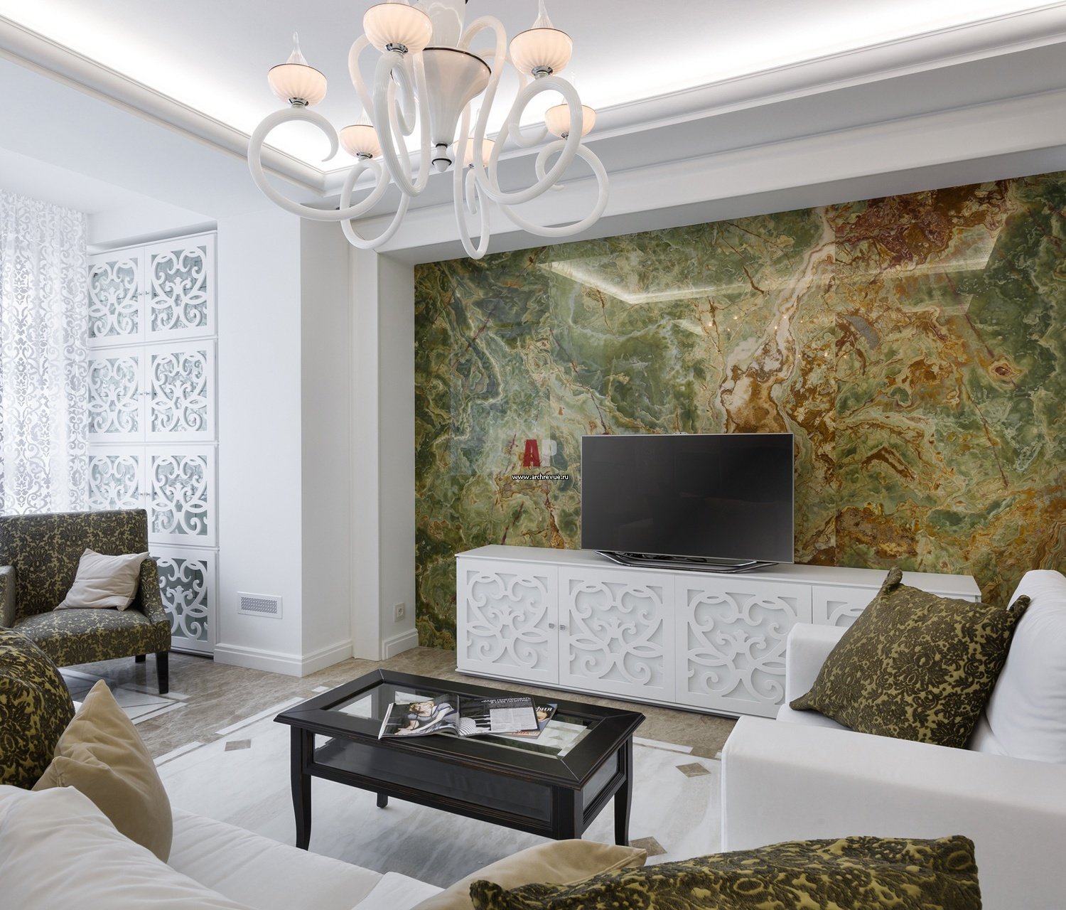 Интерьер гостинной с ониксом