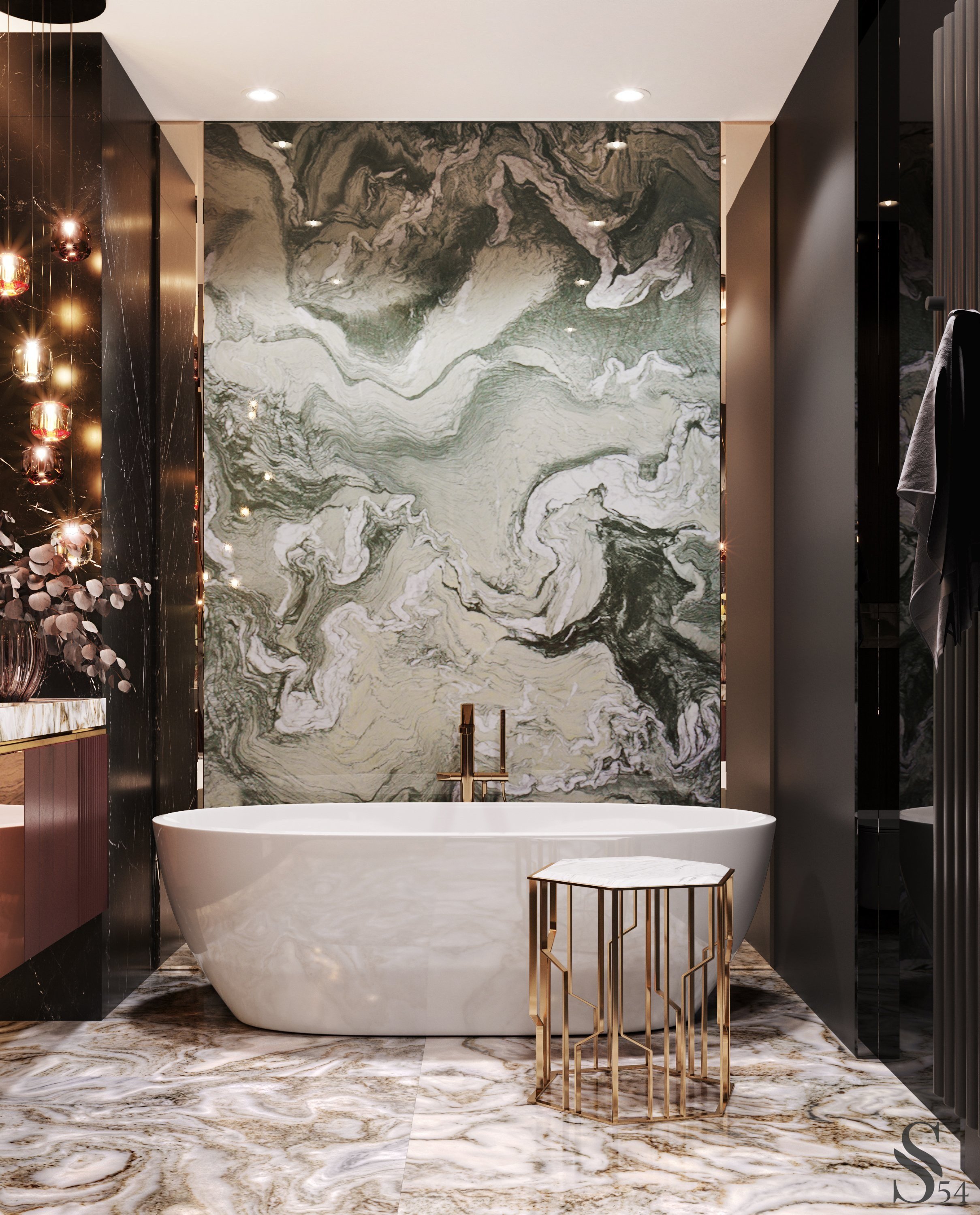 Мрамор венецианка Оникс в интерьере